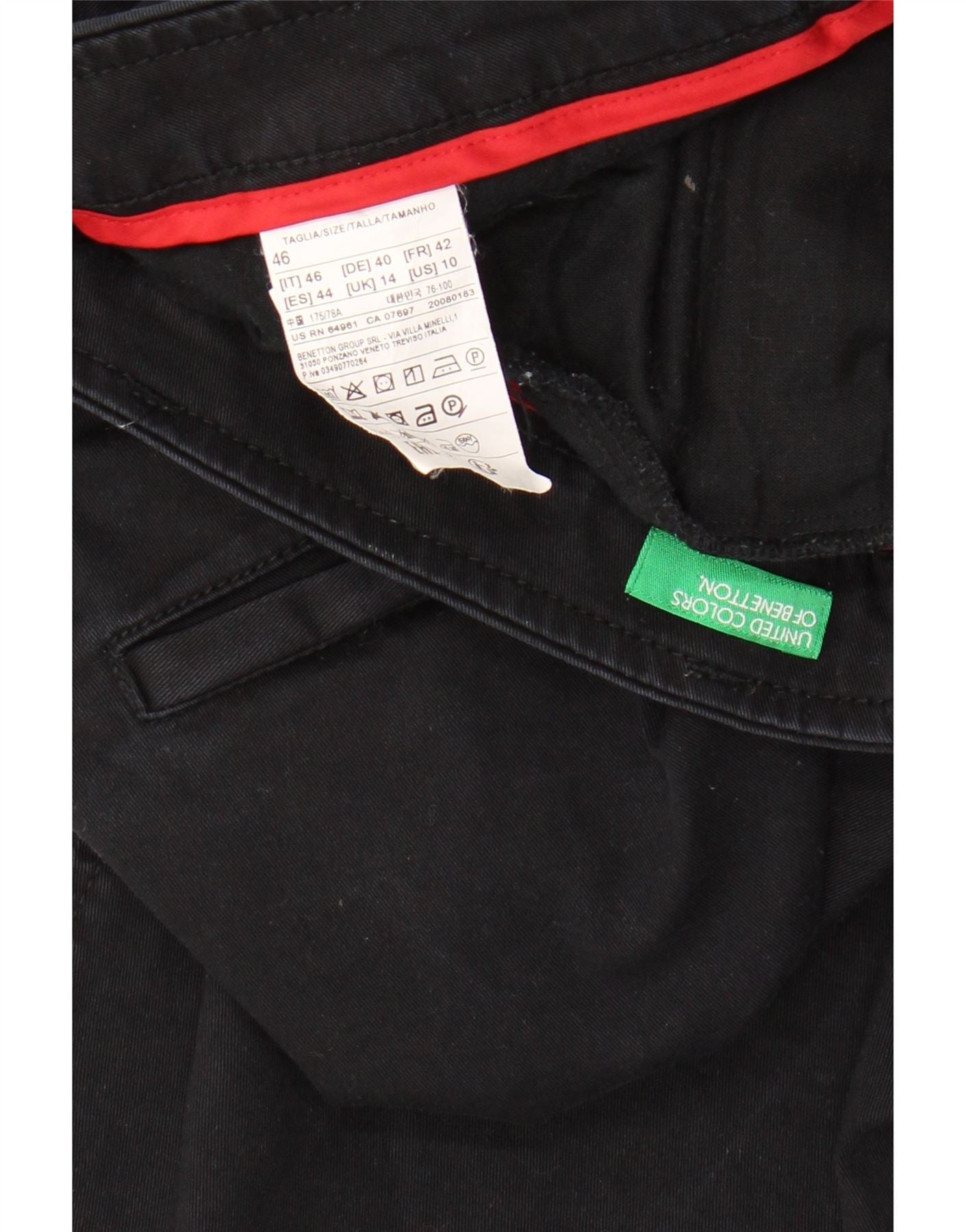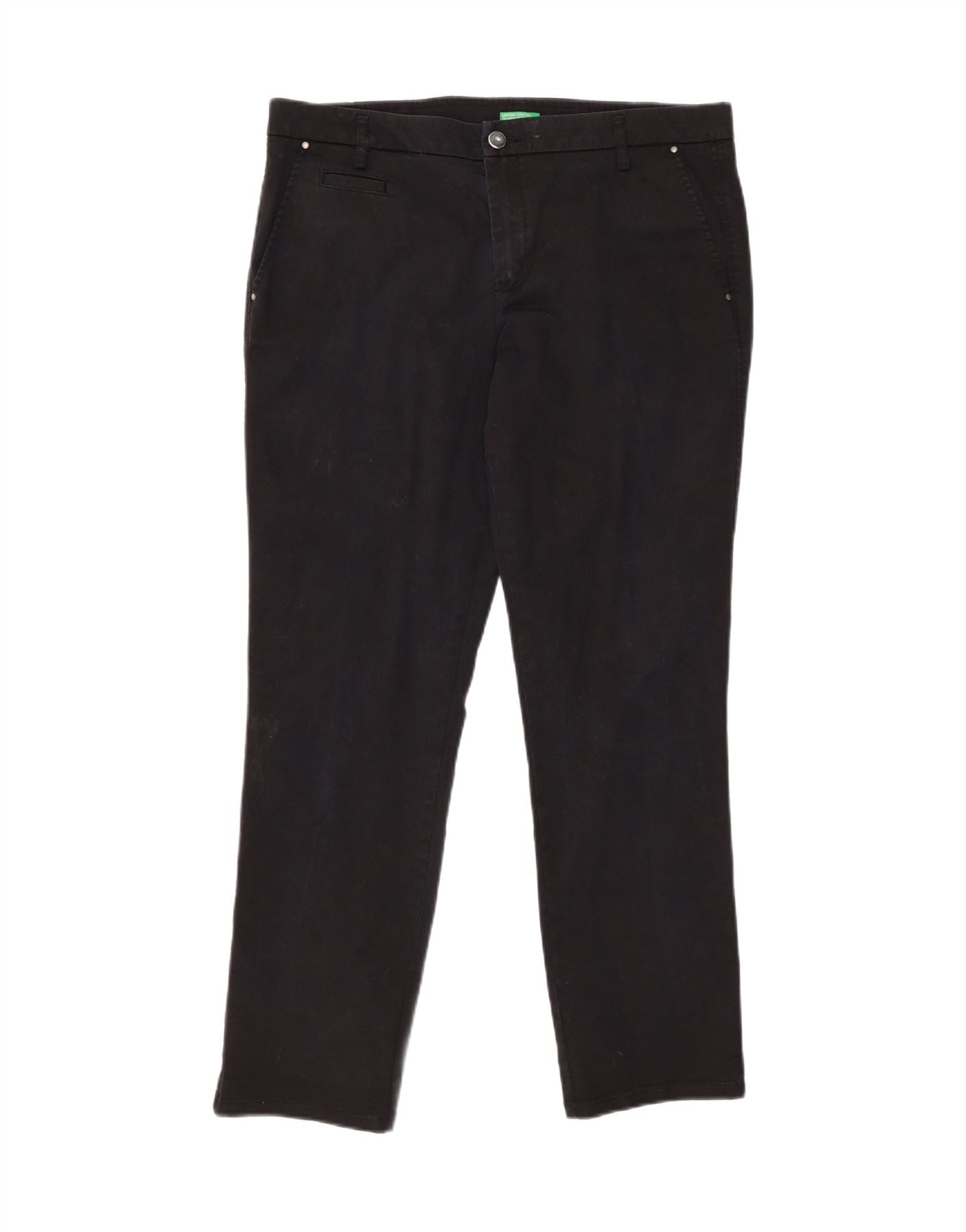 BENETTON Mens Slim Chino Trousers UK 14 Large W34 L28 Black Cotton