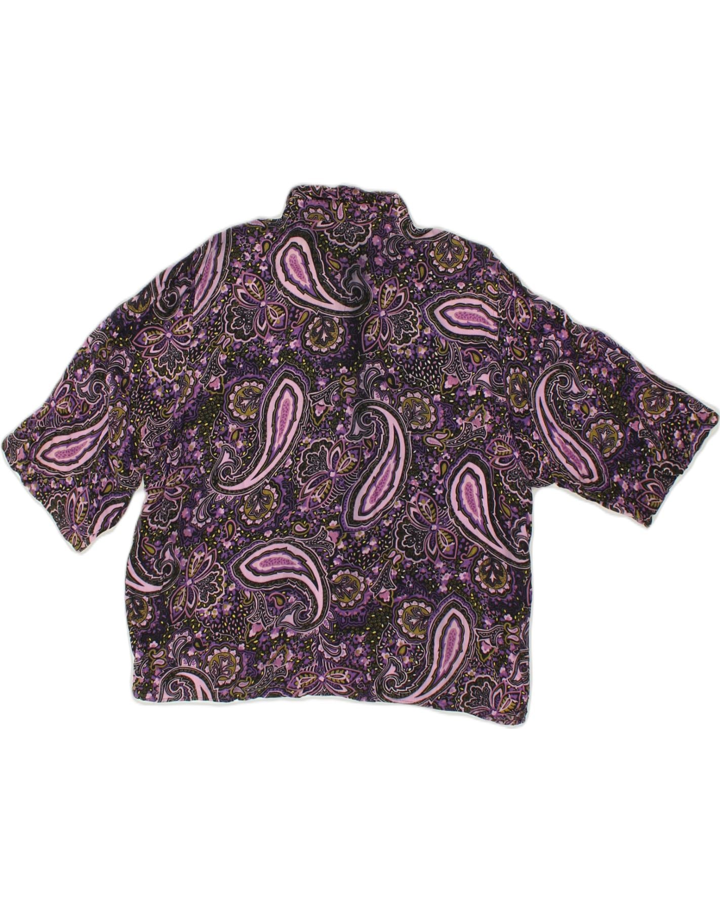 Home > Винтажная одежда Benetton > Женский > BENETTON Женская блузка-рубашка с коротким рукавом UK 20 2XL Фиолетовый хлопок с цветочным принтом