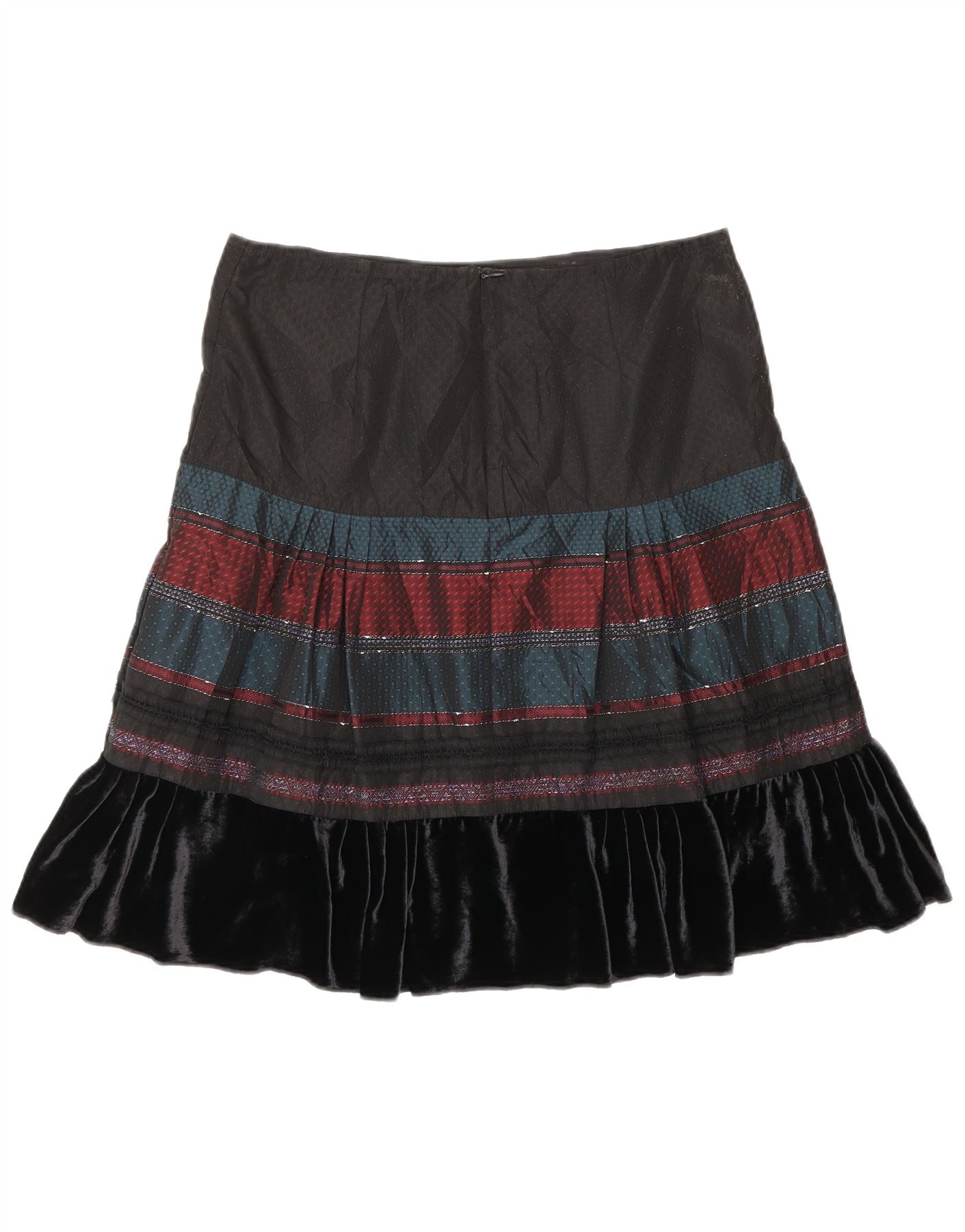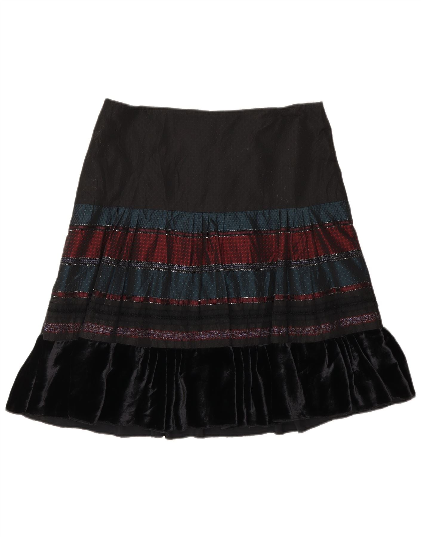 - Описание ИИ: Женская расклешенная юбка Under Colors Of Benetton отличается удобным дизайном. Черная верхняя часть создает эффектный геометрический узор насыщенных оттенков. Роскошная бархатная оборка подчеркивает подол, придавая нотку богемного шарма. Классический крой и расклешенный силуэт обеспечивают грациозность движений. Эта юбка сочетает в себе стиль и комфорт.