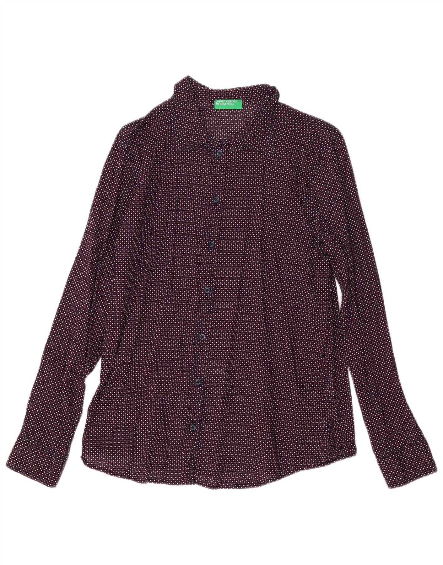 BENETTON Womens Abstract Pattern Shirt UK 14 Medium Multicoloured Cotton