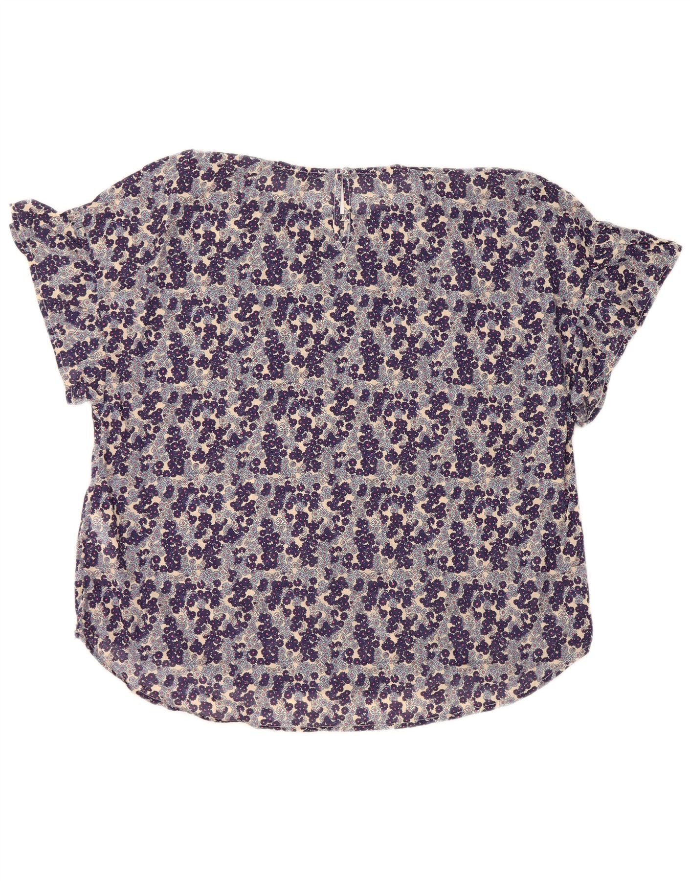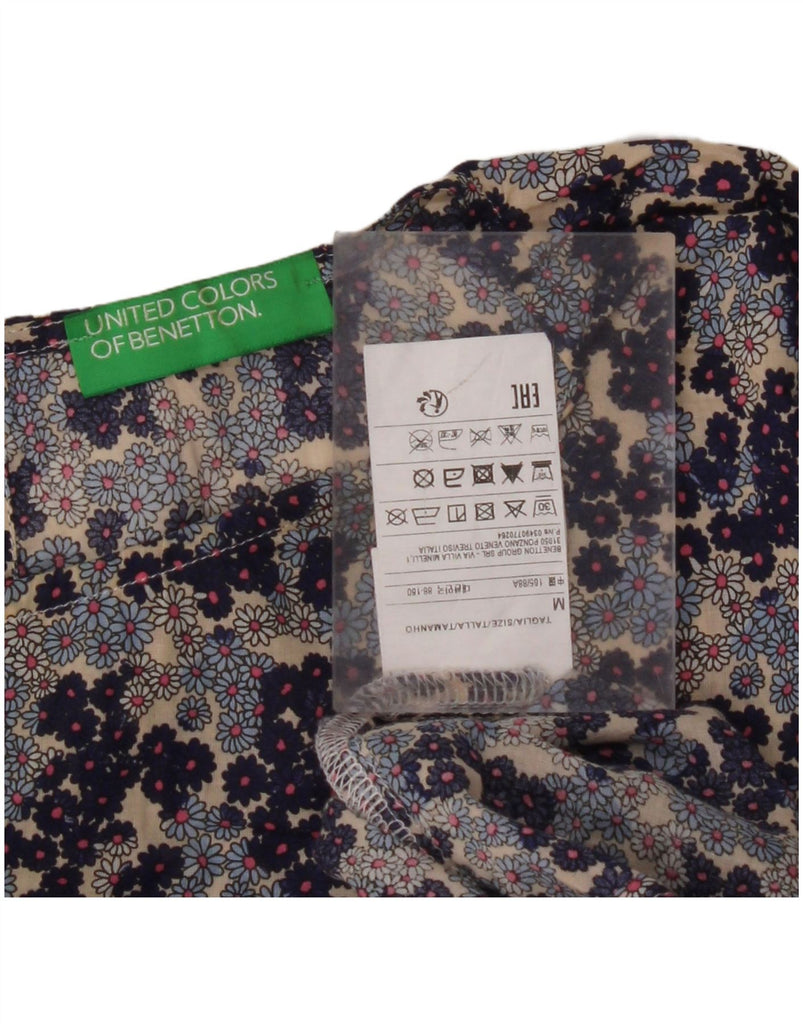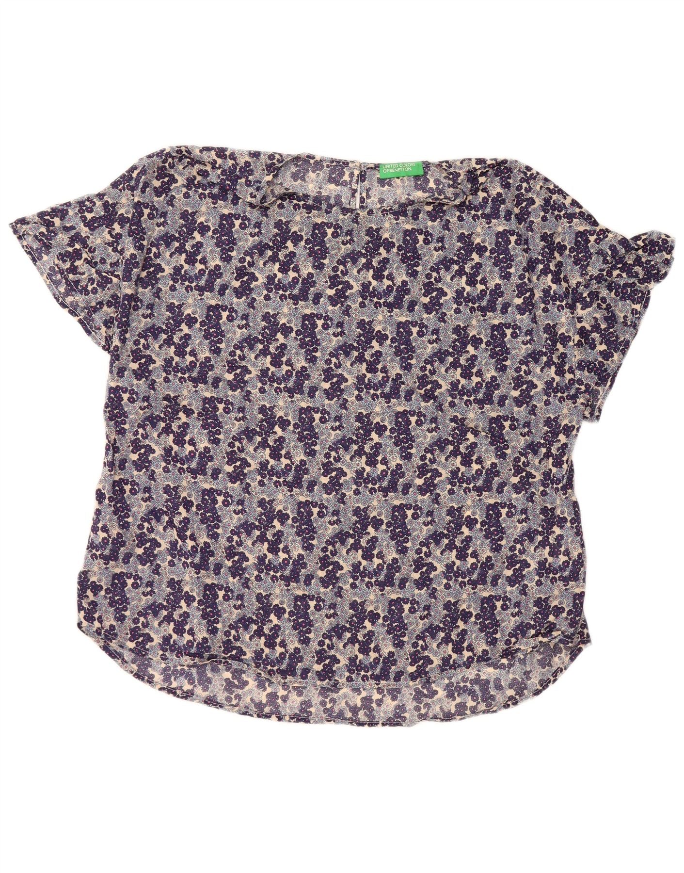 Женская блузка BENETTON Top UK 14, хлопок среднего синего цвета с цветочным принтом