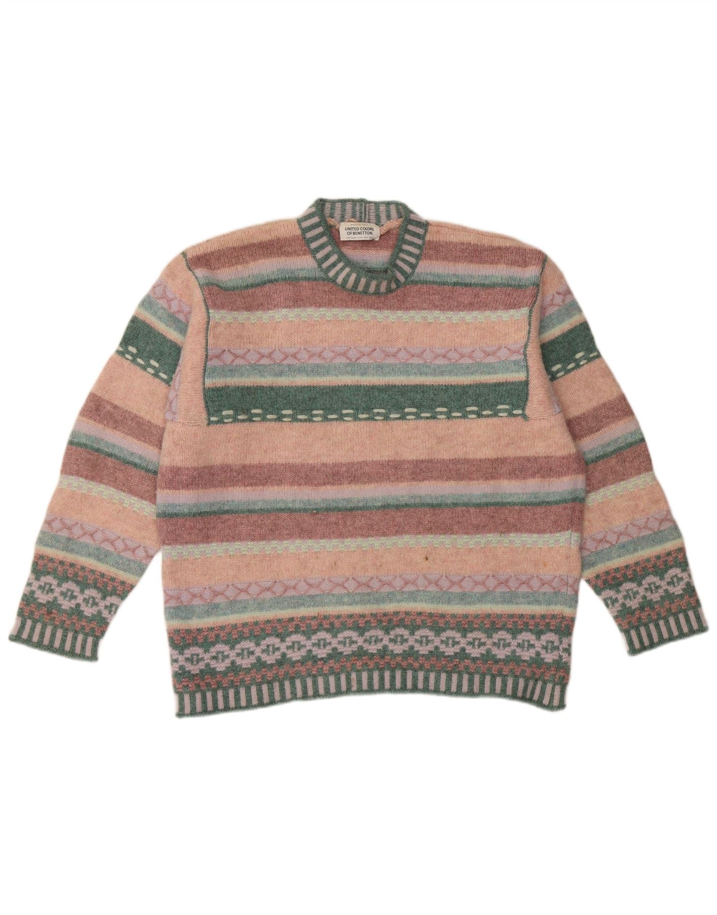 Home > Винтажная одежда Benetton > Женский > Женский джемпер с круглым вырезом BENETTON UK 16, большой, в разноцветную полоску