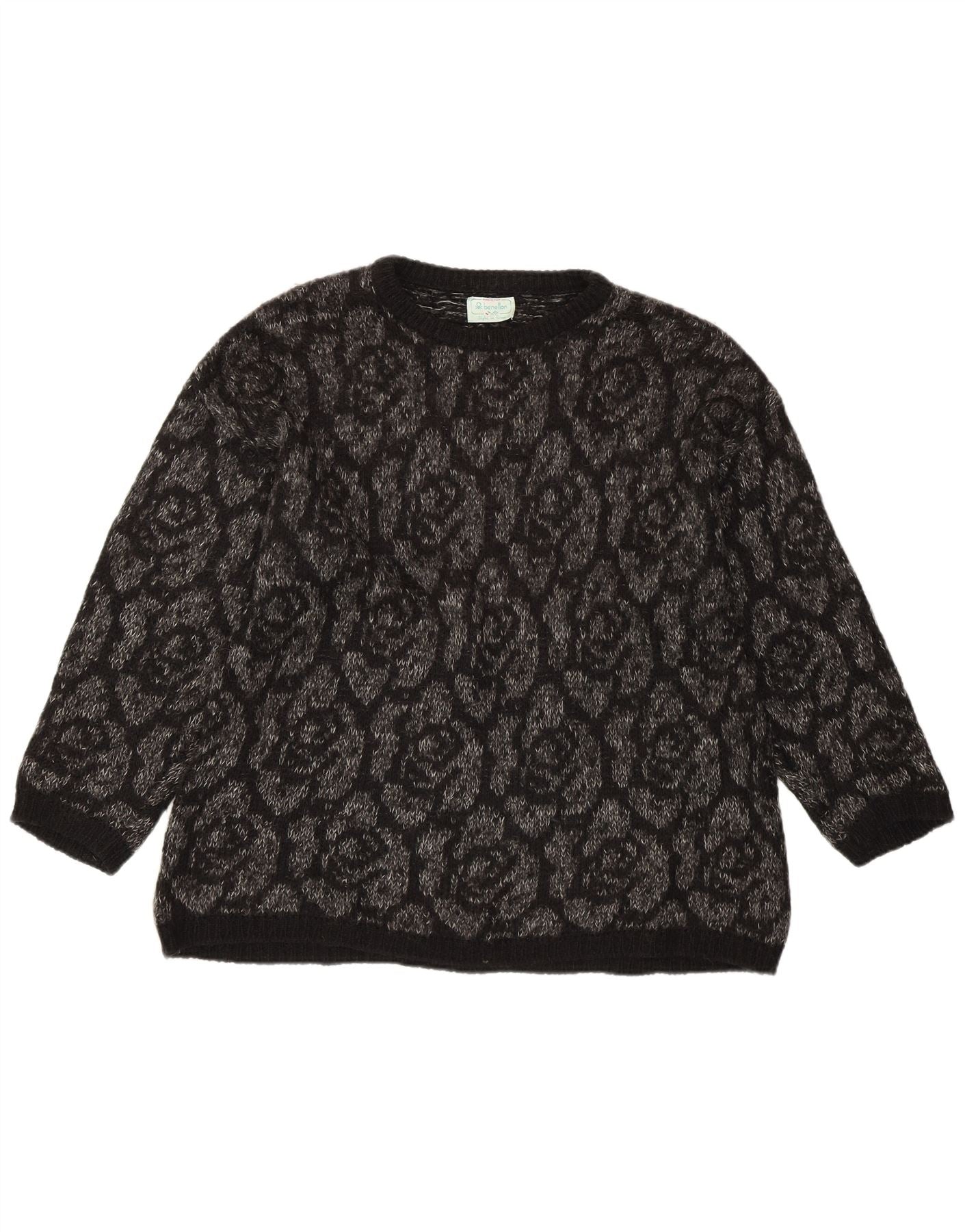 Home > Винтажная одежда Benetton > Женский > Женский джемпер с круглым вырезом BENETTON, Великобритания 18 XL, черный с цветочным принтом