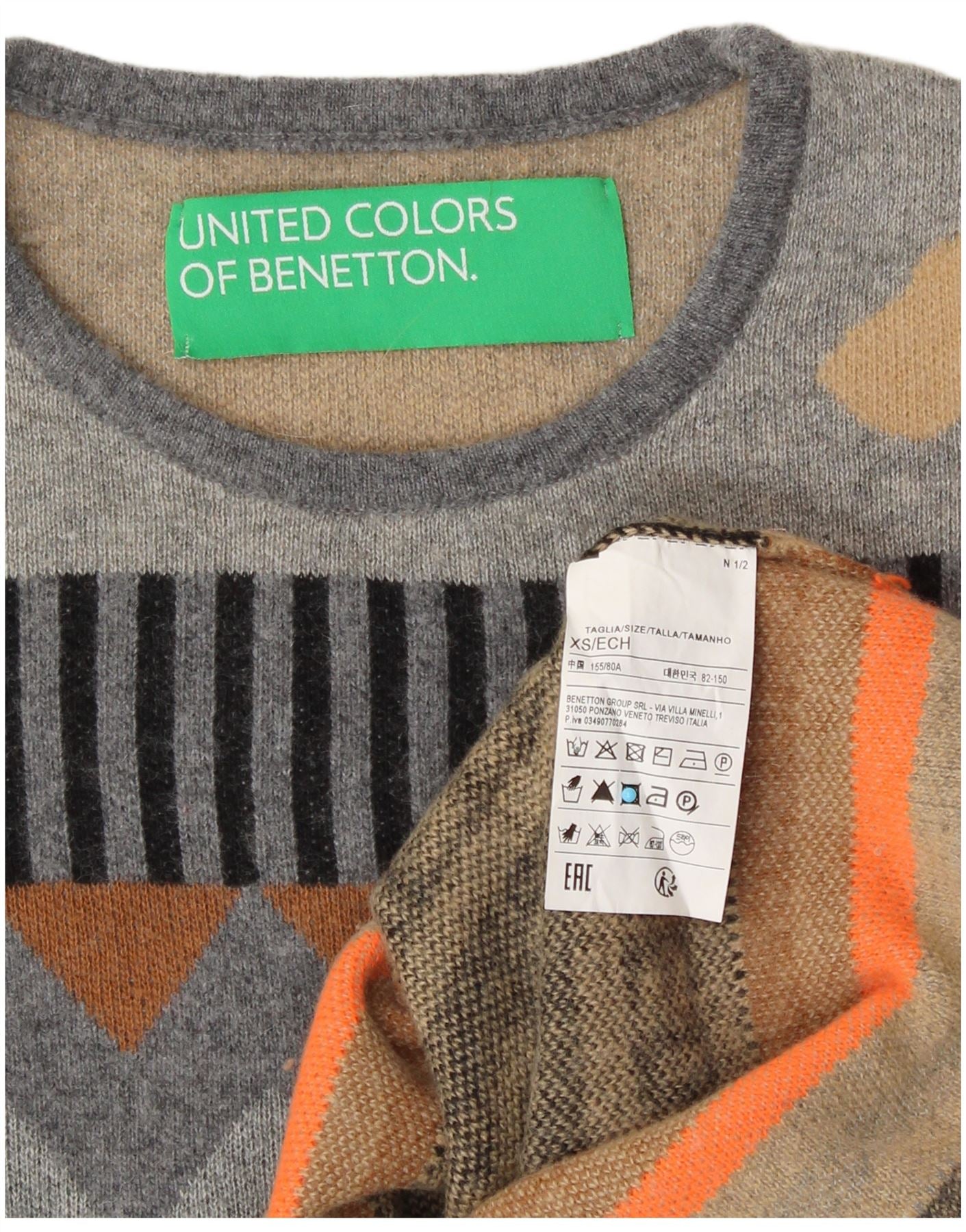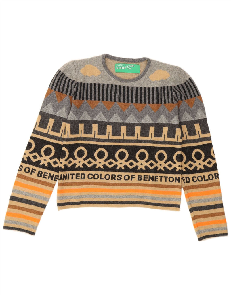 BENETTON Womens Crop Loose Fit Crew Neck Jumper Sweater UK 6 XS Grey