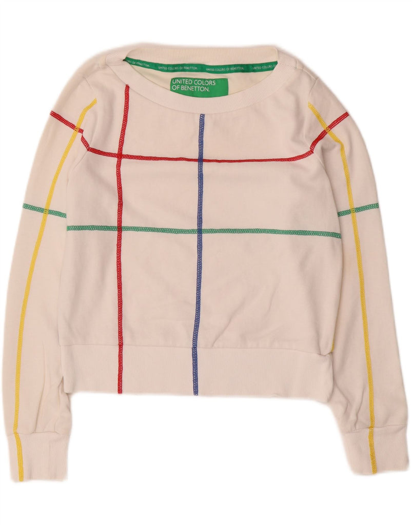 Женский укороченный свитер BENETTON UK 10, маленький белый в полоску