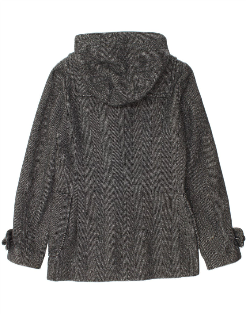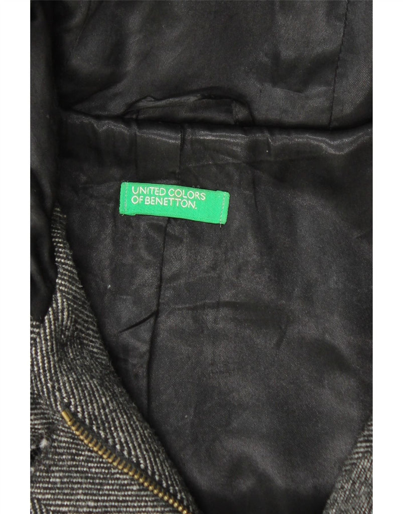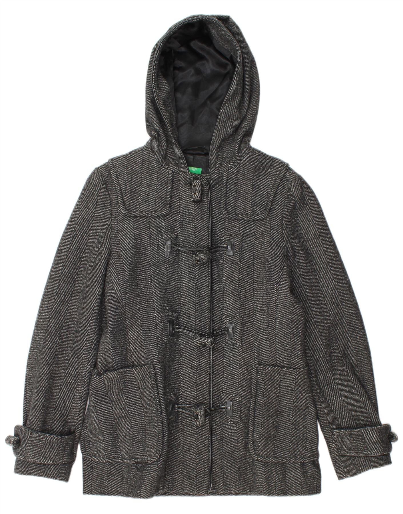 BENETTON Женский дафлкот с капюшоном IT 44 Средний Черный Шерсть с узором «елочка»