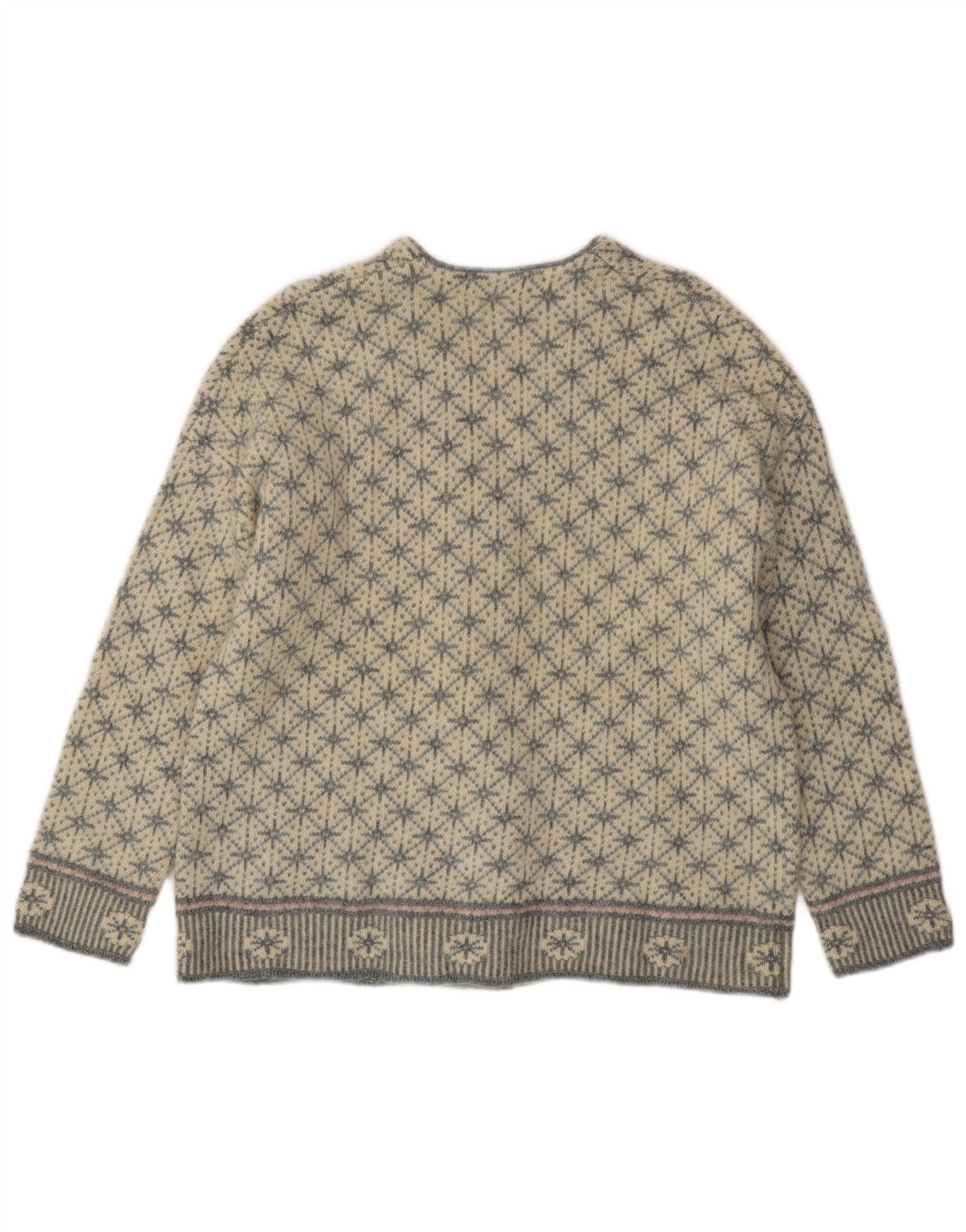 Женский свитер-кардиган оверсайз BENETTON UK 10, маленький серый Fair Isle