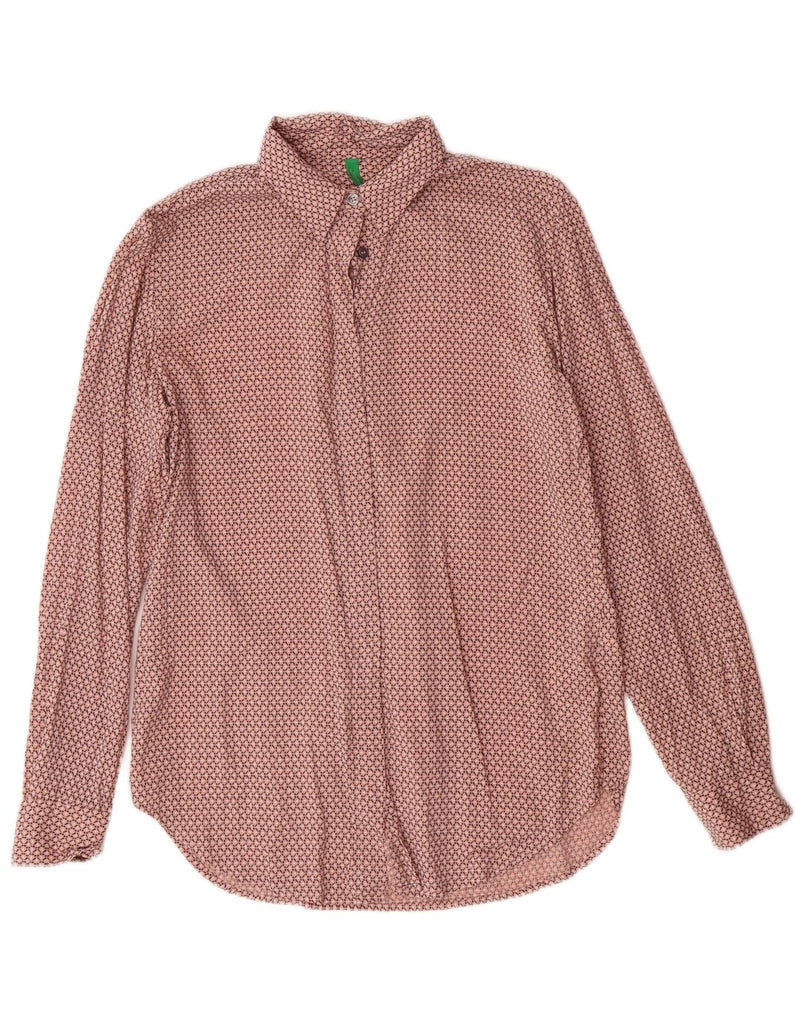 BENETTON Женская удлиненная рубашка оверсайз UK 6 XS Розовая из модала с геометрическим узором