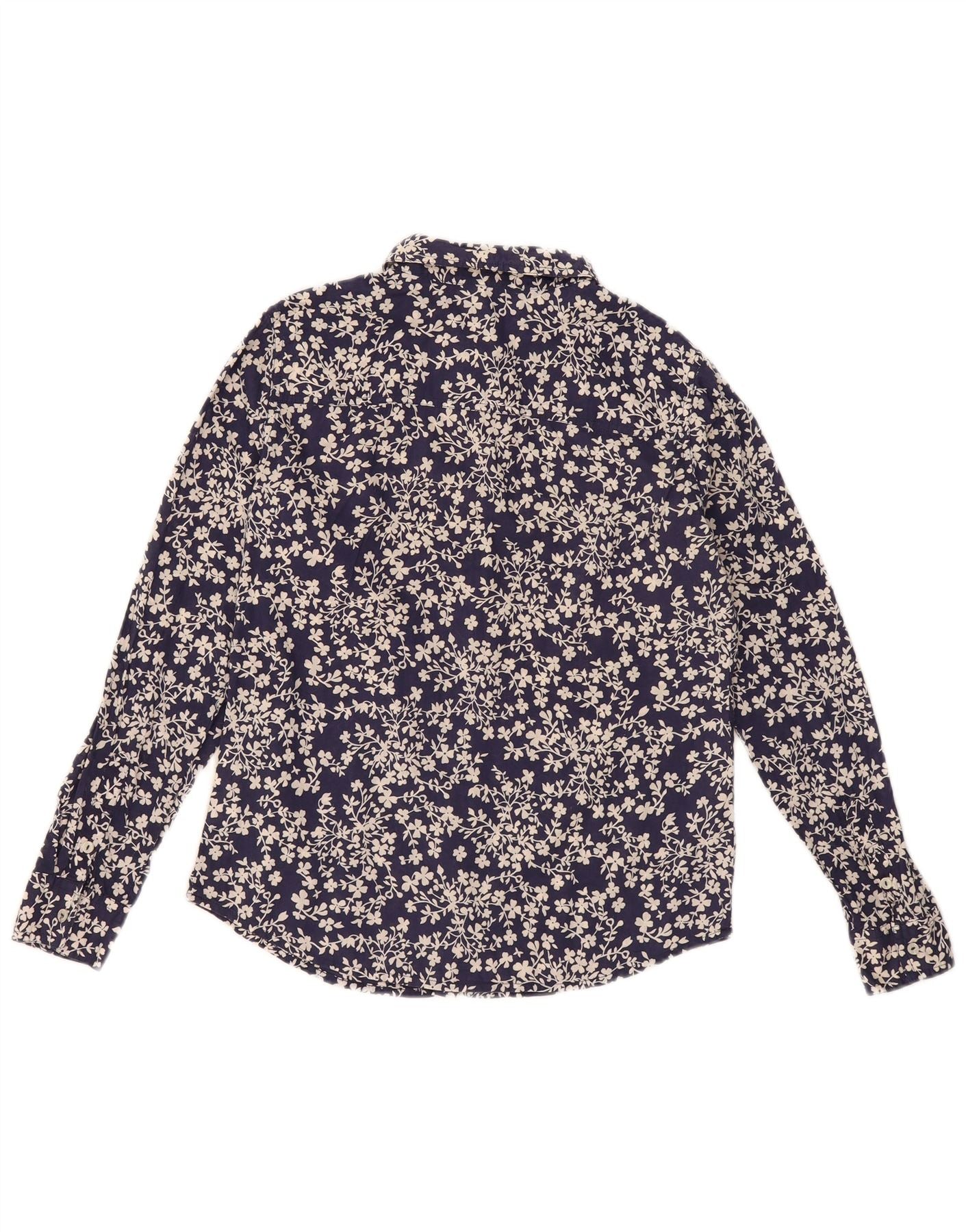 Home > Винтажная одежда Benetton > Женский > Женская рубашка оверсайз BENETTON UK 10, маленькая, темно-синяя, хлопковая с цветочным принтом