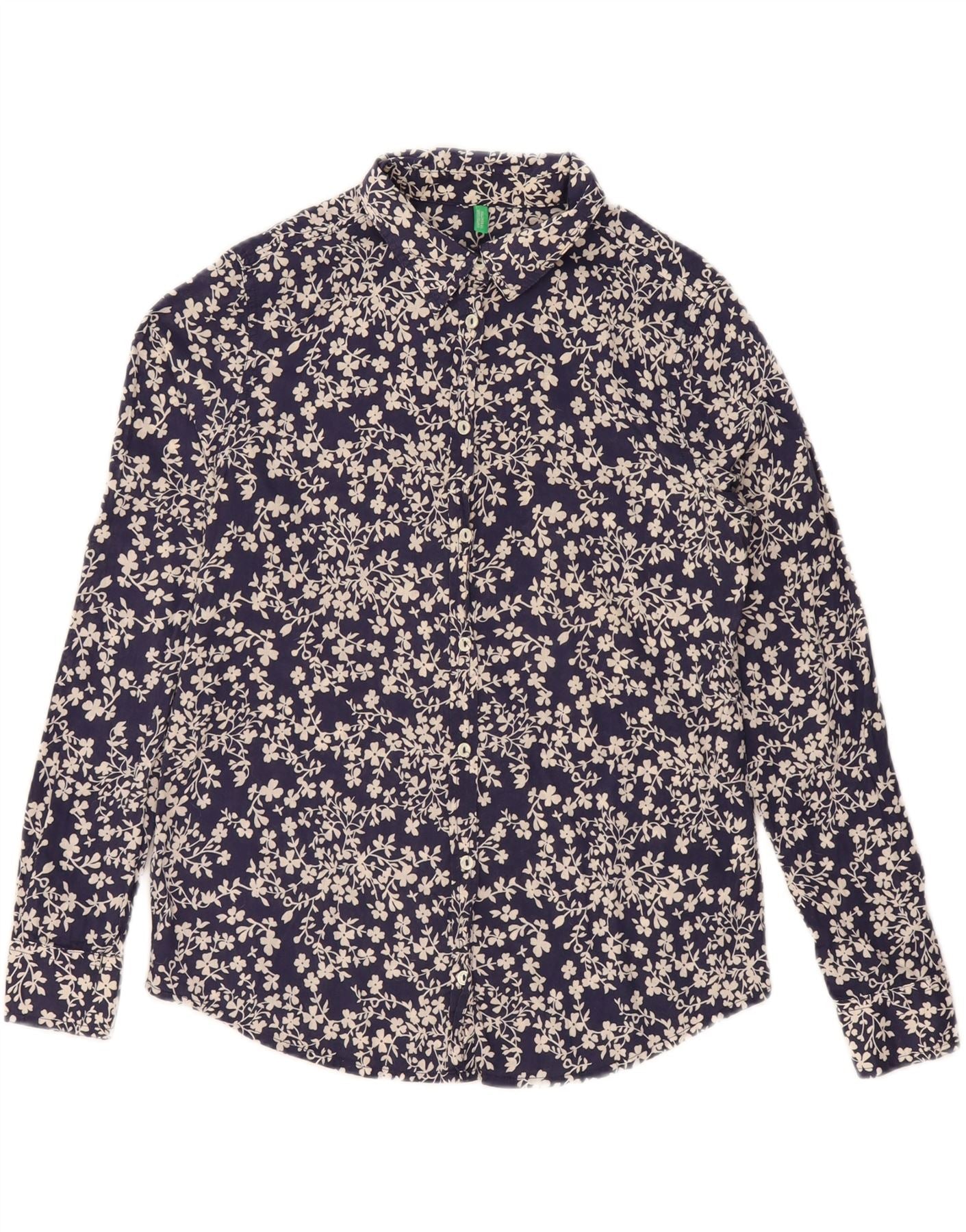 Женская рубашка оверсайз BENETTON UK 10, маленькая, темно-синяя, хлопковая с цветочным принтом