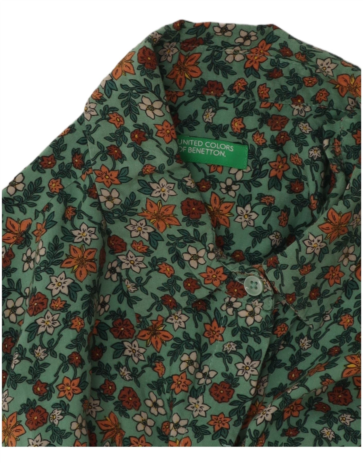 Home > Винтажная одежда Benetton > Женский > Женская рубашка Benetton UK 14, средний зеленый с цветочным принтом