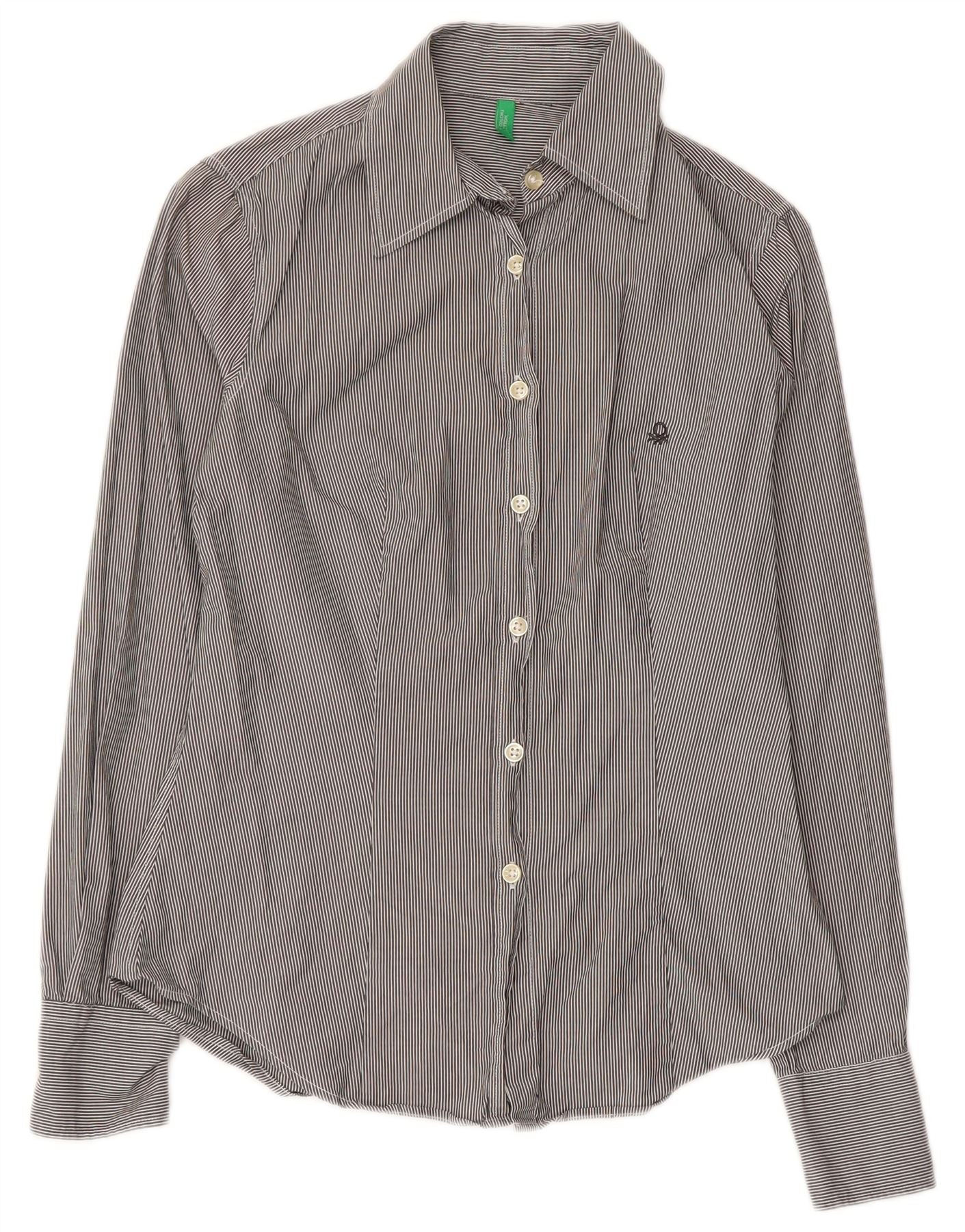 Рубашка женская BENETTON UK 8, маленькая серая в тонкую полоску