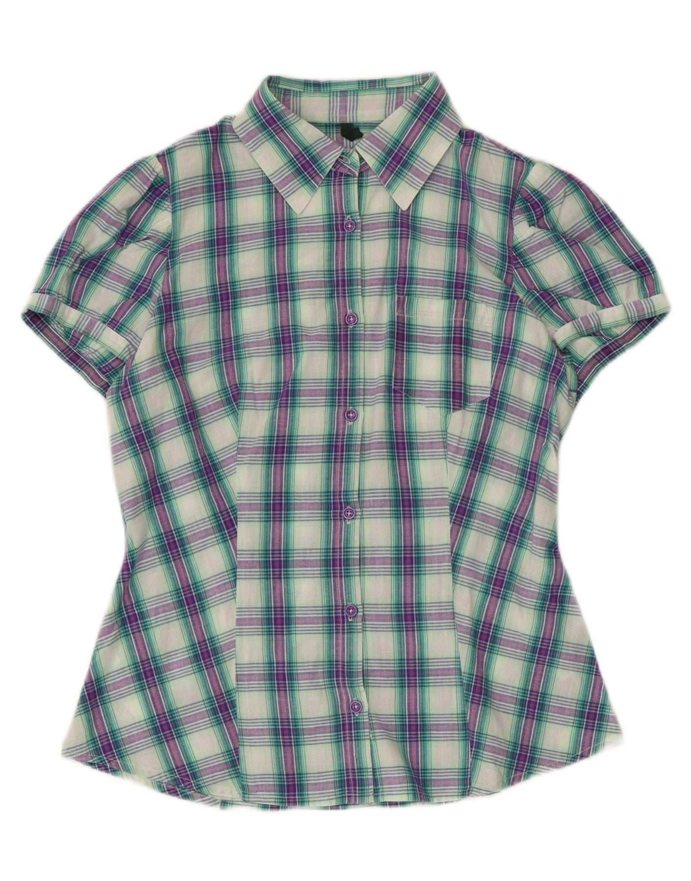 Home > Женский > Депоп Одежда > BENETTON Женская рубашка с коротким рукавом UK 14, средний разноцветный хлопок в клетку