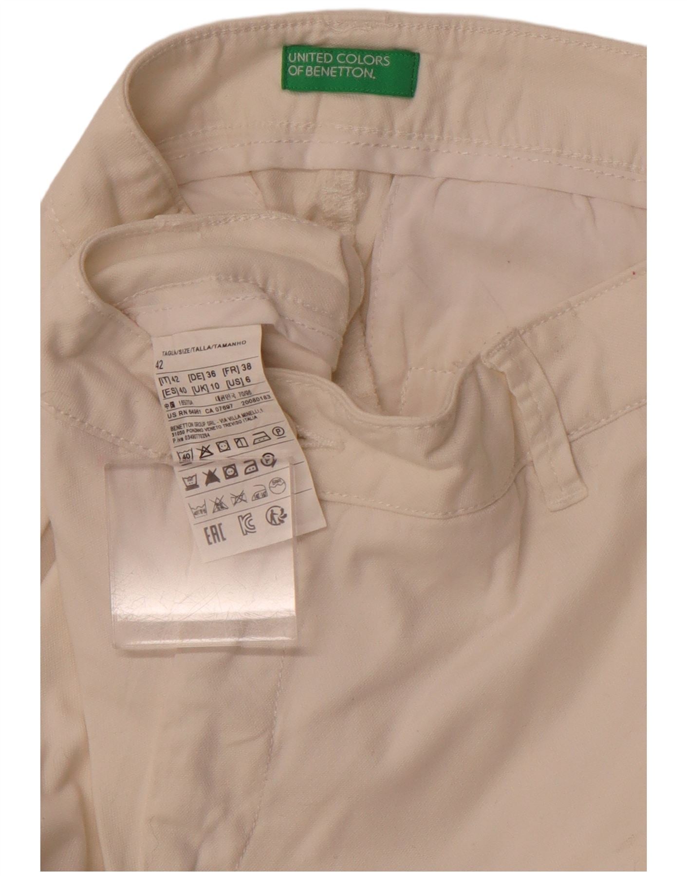 Home > Винтажная одежда Benetton > Женский > Женские прямые брюки чинос BENETTON UK 10, маленькие W28 L28, белый хлопок