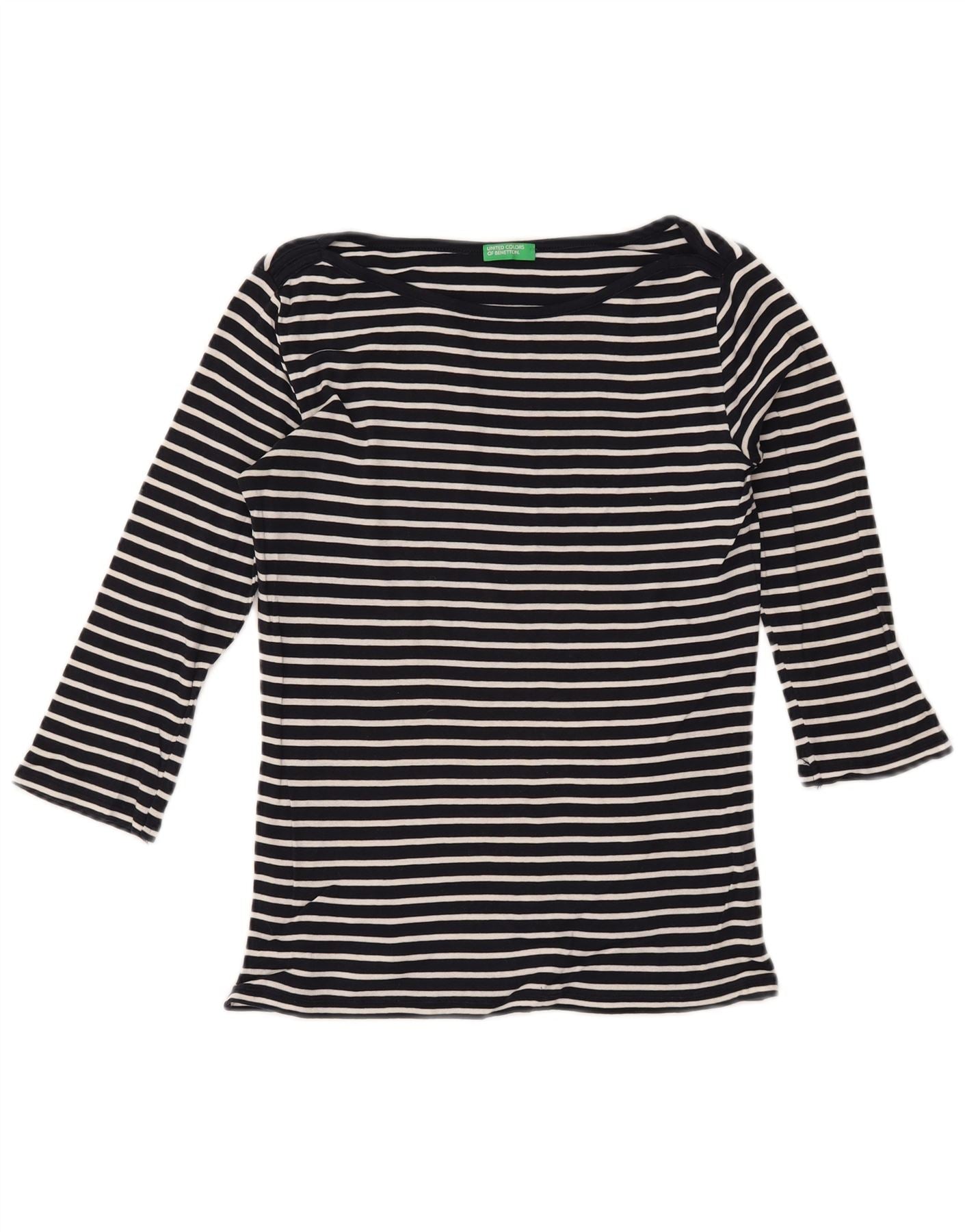 Home > Женский > Депоп Одежда > Женский топ BENETTON с рукавом 3/4, UK 10, маленький, темно-синий, в полоску, хлопок