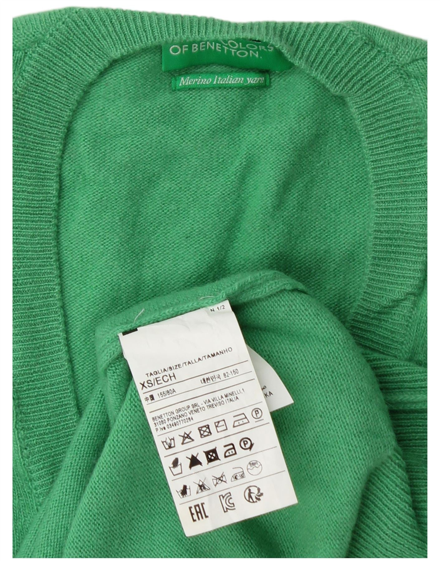 Женский джемпер с v-образным вырезом BENETTON UK 6 XS Зеленый из натуральной шерсти