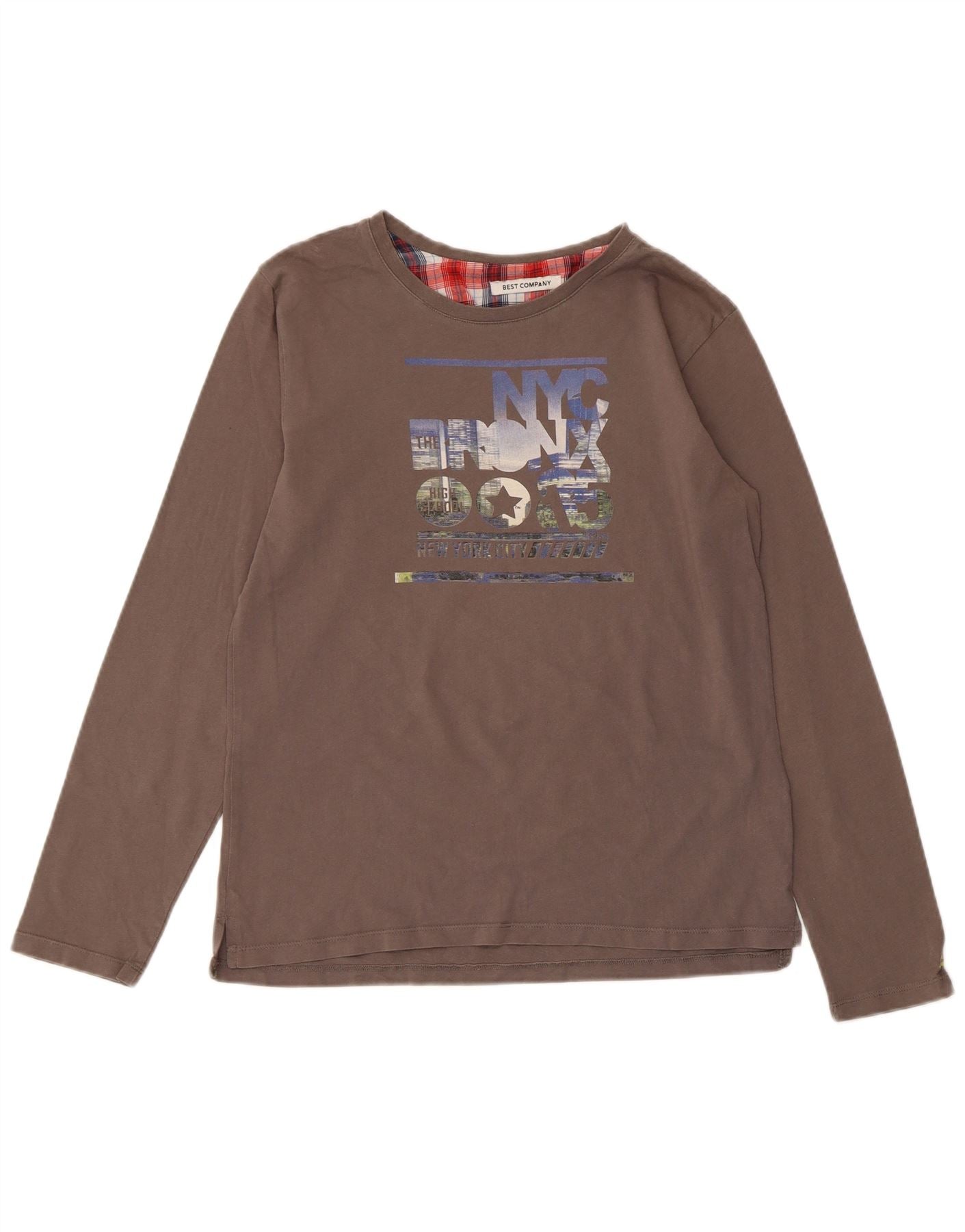 BEST COMPANY Boys Graphic Top Long Sleeve 13-14 Years Grey Cotton