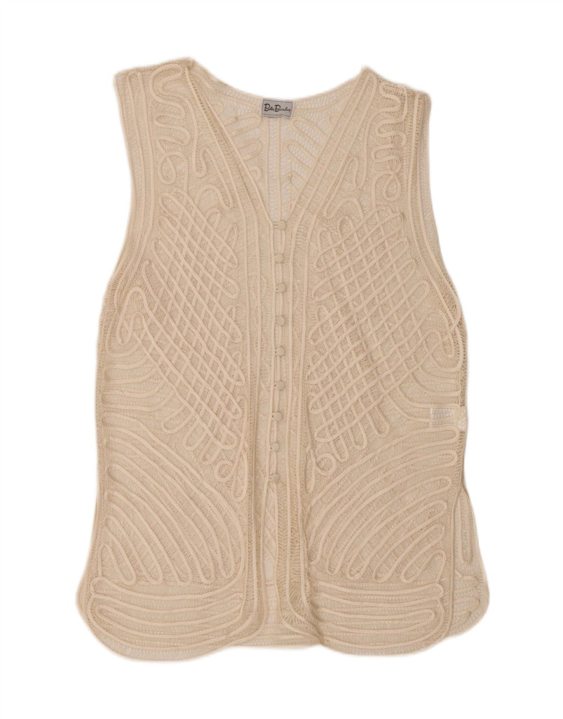 BETTY BARCLAY Womens Sleeveless Crochet Cardigan Top UK 18 XL Off White