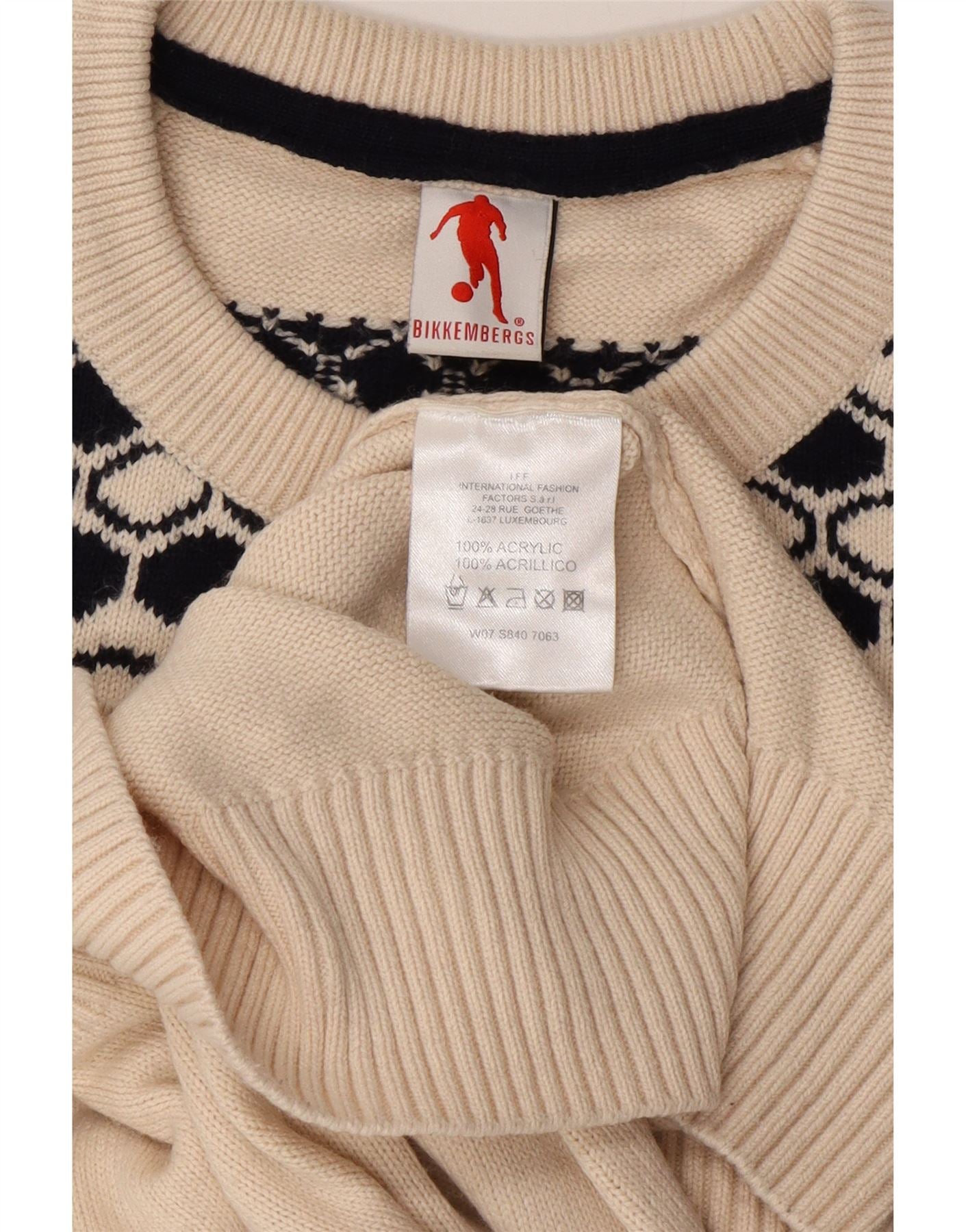 BIKKEMBERGS Mens Crew Neck Jumper Sweater Medium Beige Camouflage Acrylic
