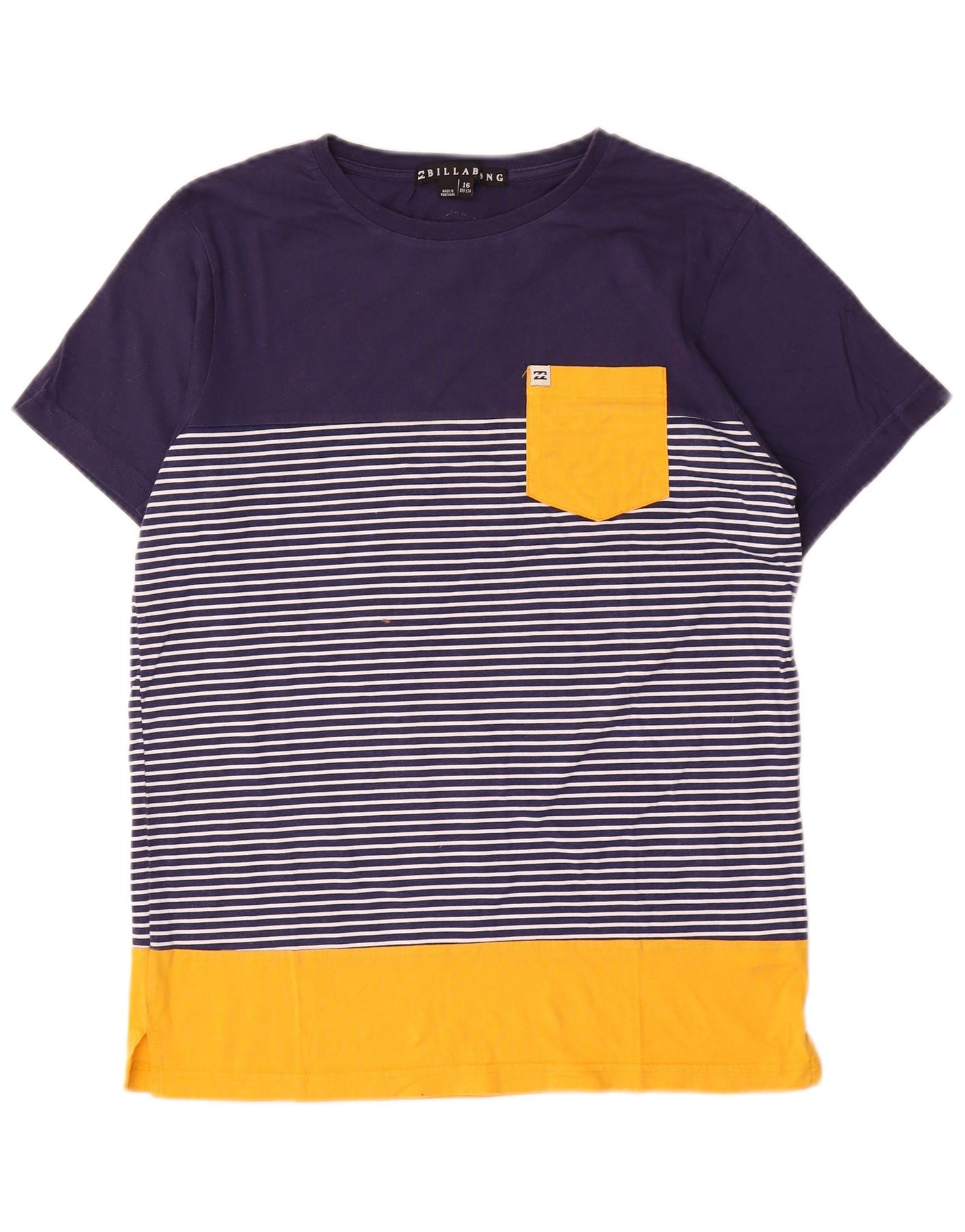 BILLABONG Boys T-Shirt Top 15-16 Years Navy Blue Striped Cotton