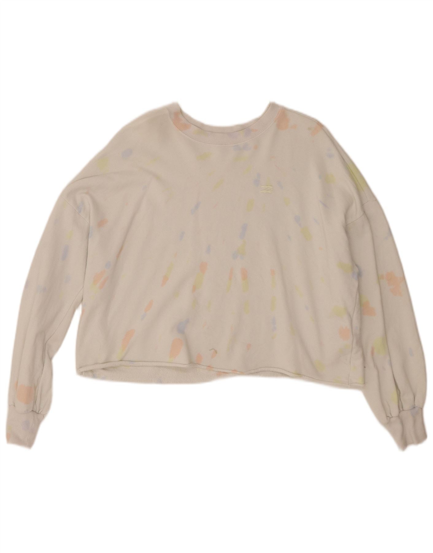 BILLABONG Womens Oversized Sweatshirt Jumper UK 14 Medium White Tie Dye