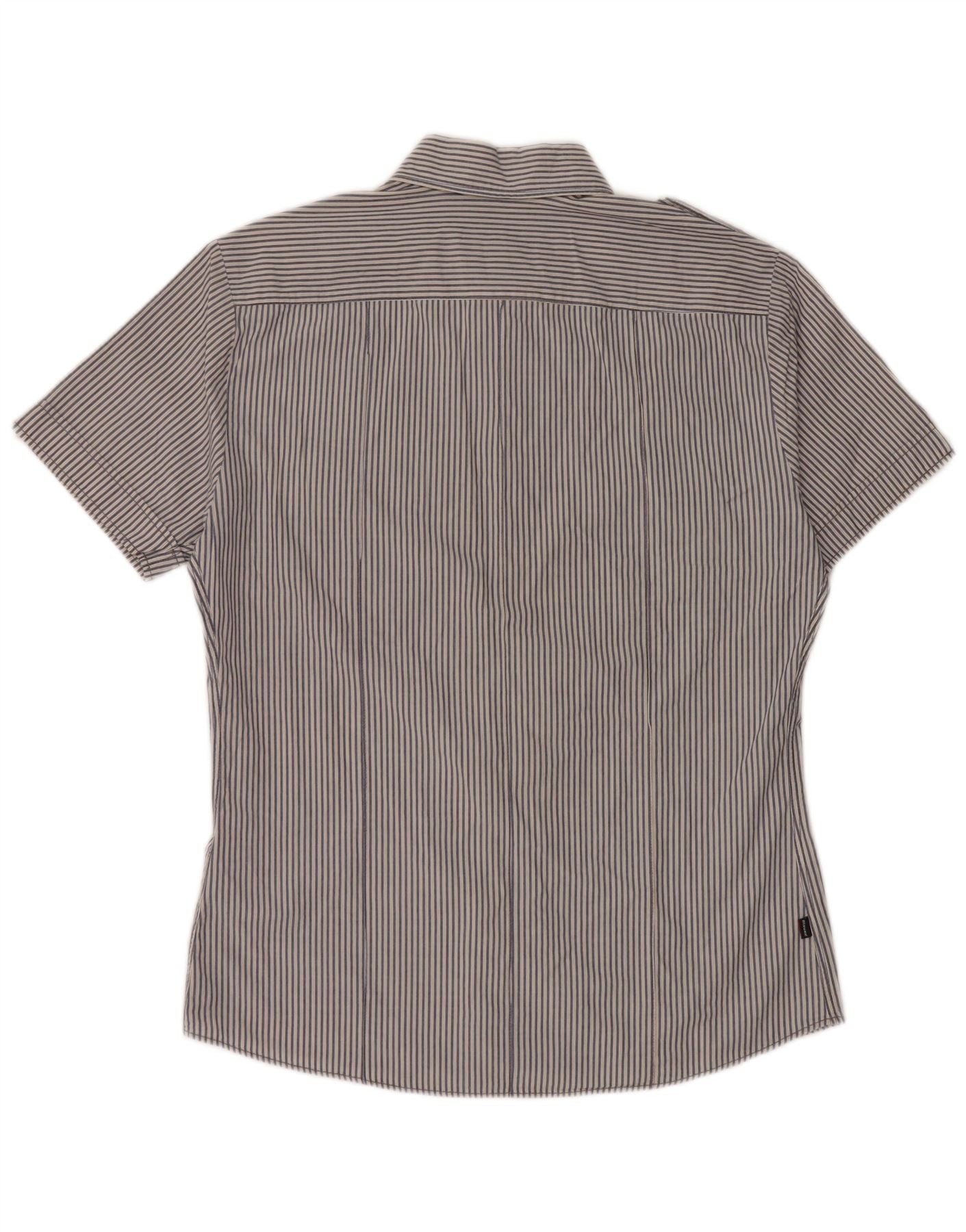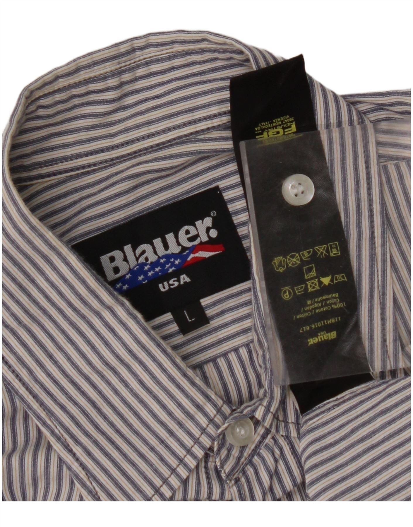 BLAUER Мужская рубашка с коротким рукавом в стиле милитари, большая синяя хлопковая полоска