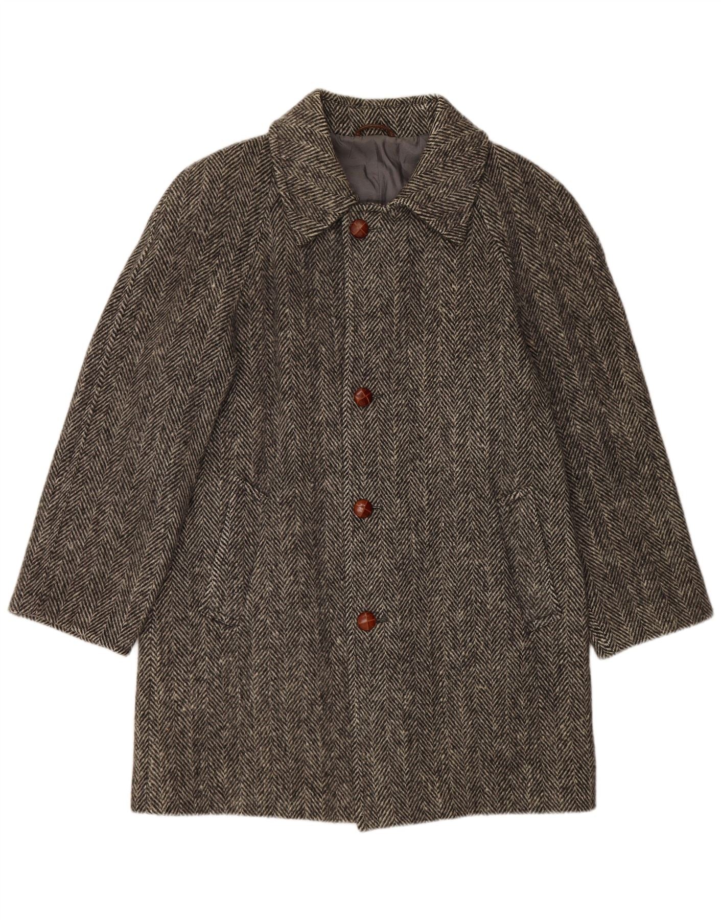 Мужское пальто BLUE DEVIL UK 38, шерсть среднего серого цвета с узором «елочка»