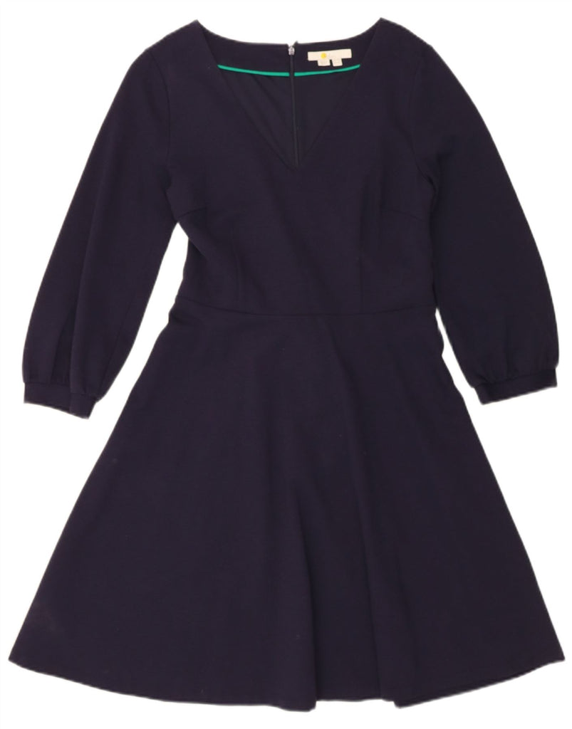BODEN Womens 3/4 Sleeve A-Line Dress UK 10 Samll Navy Blue Cotton