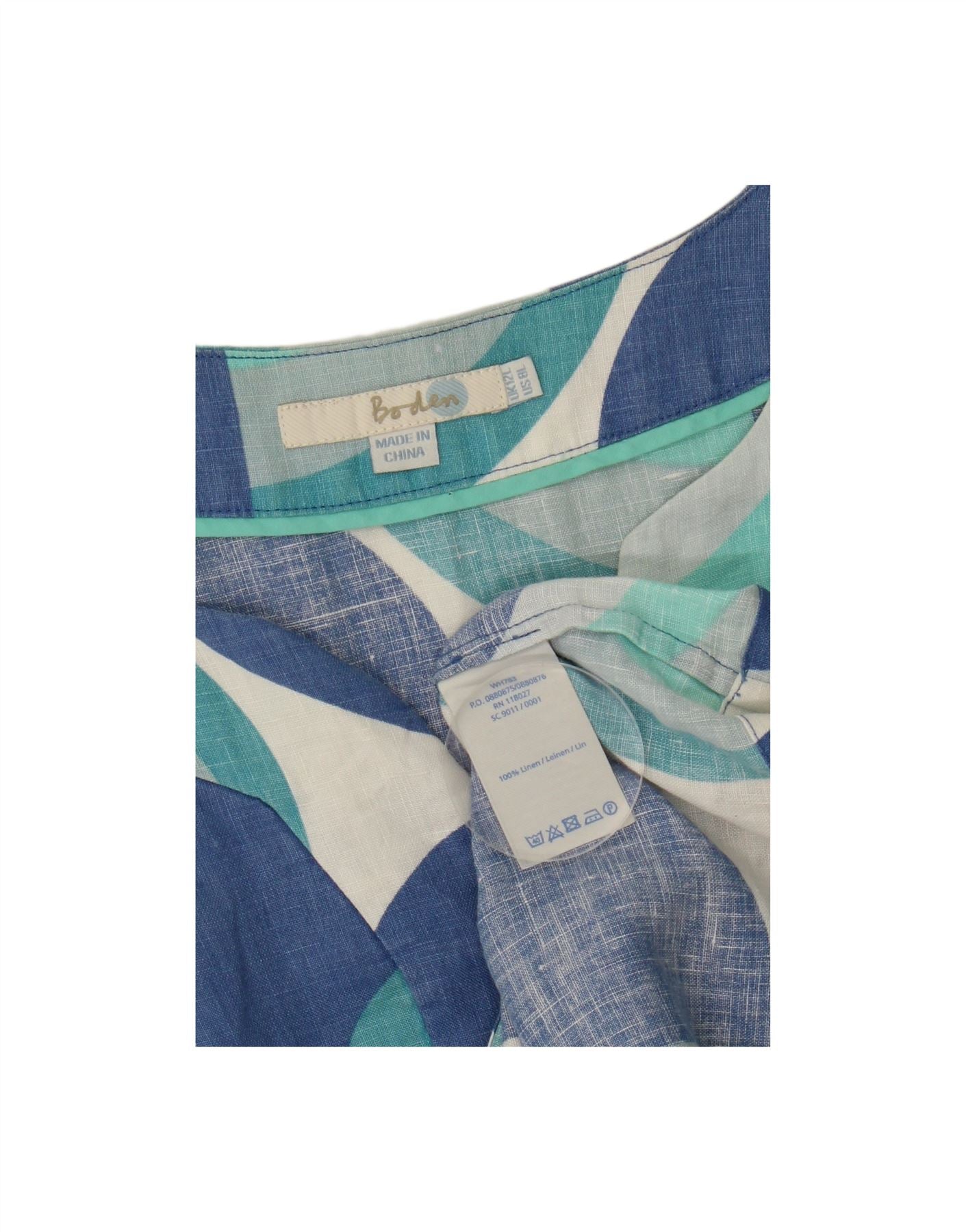 BODEN Womens 3/4 Sleeve A-Line Dress UK 12 Medium Blue Geometric Linen
