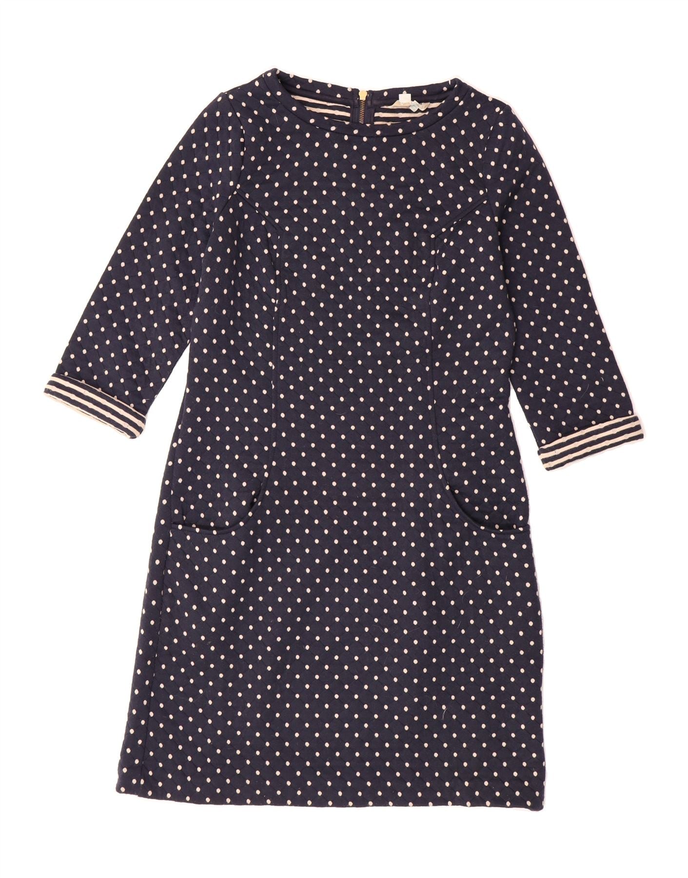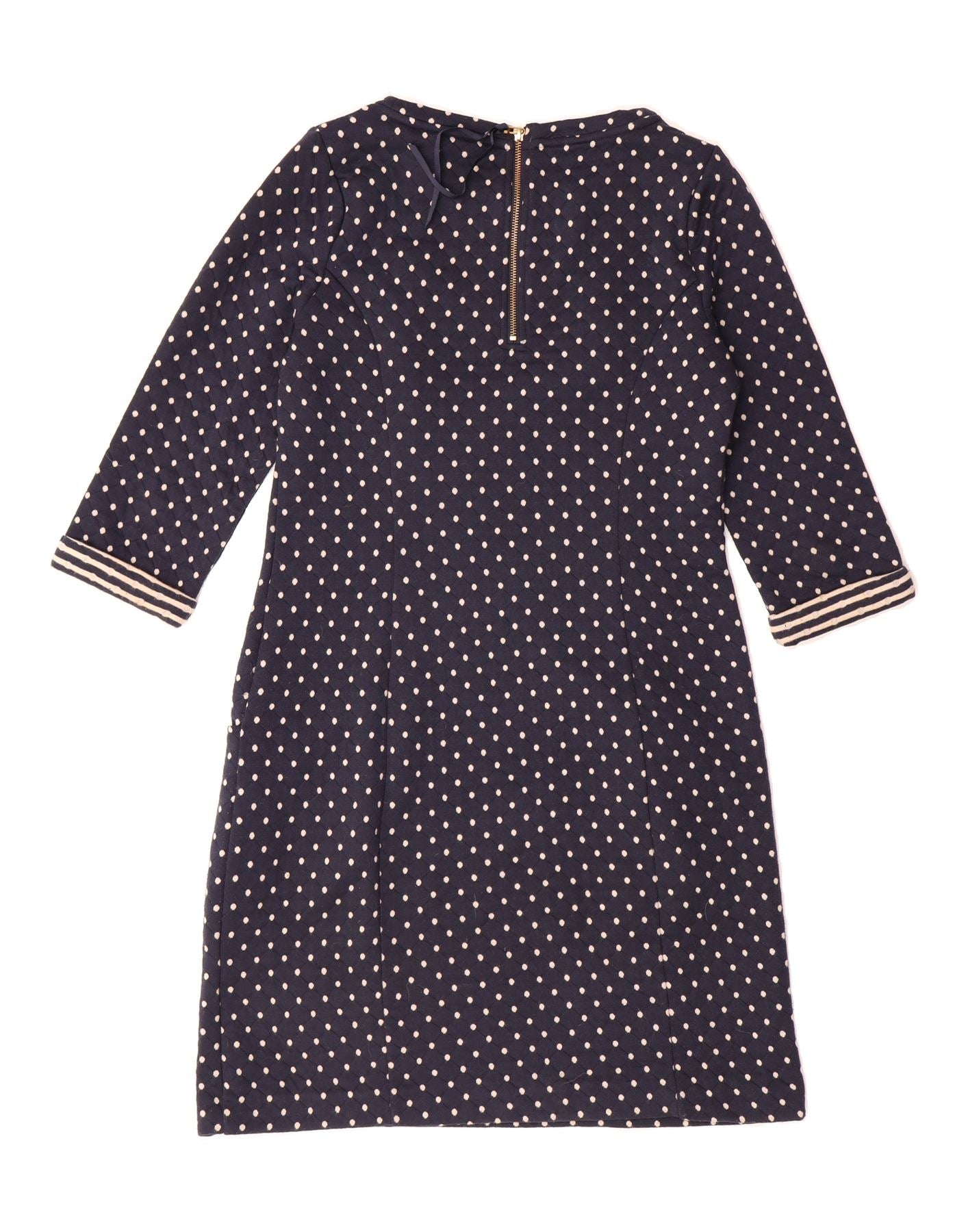 BODEN Womens 3/4 Sleeve A-Line Dress UK 12 Medium Navy Blue Polka Dot