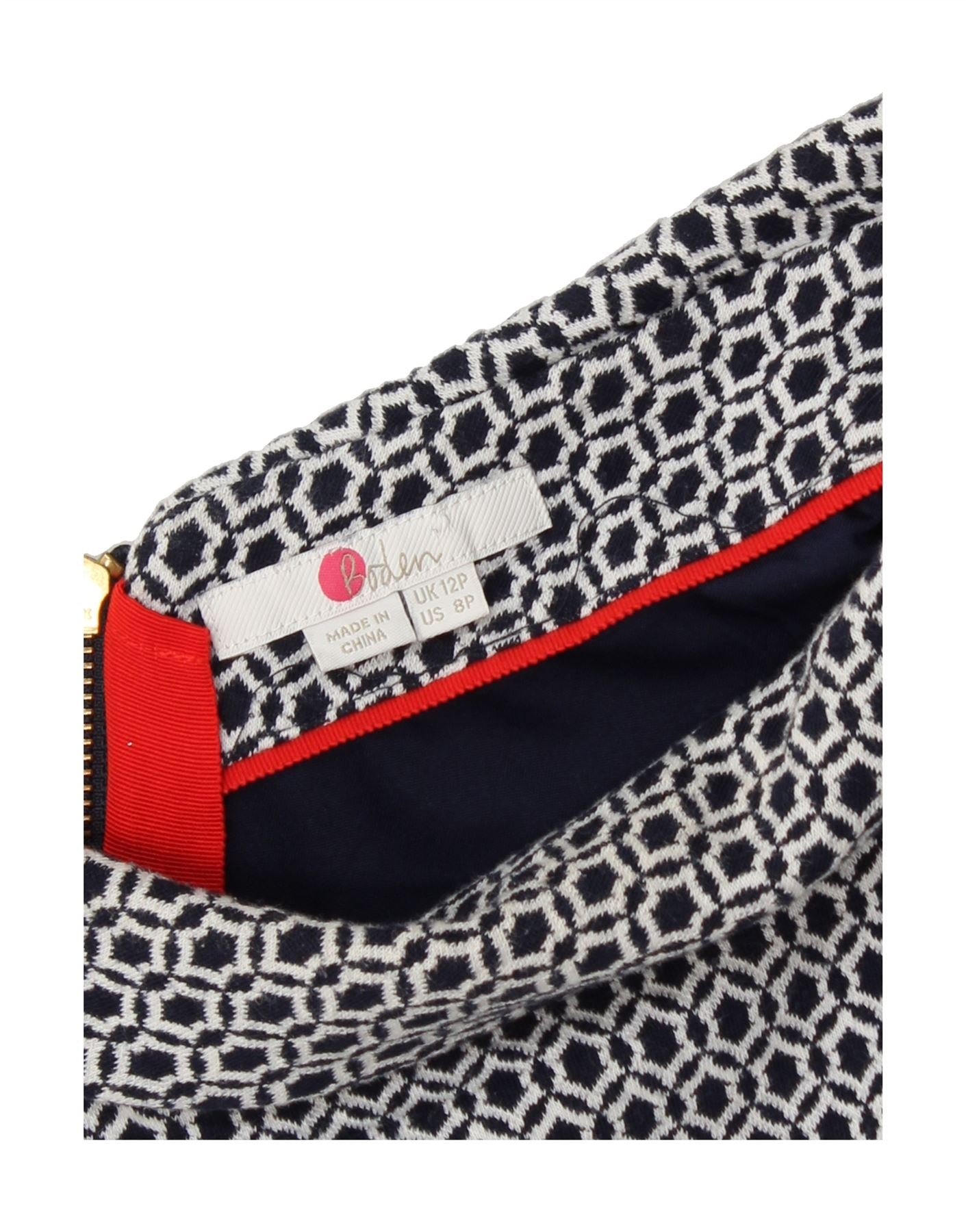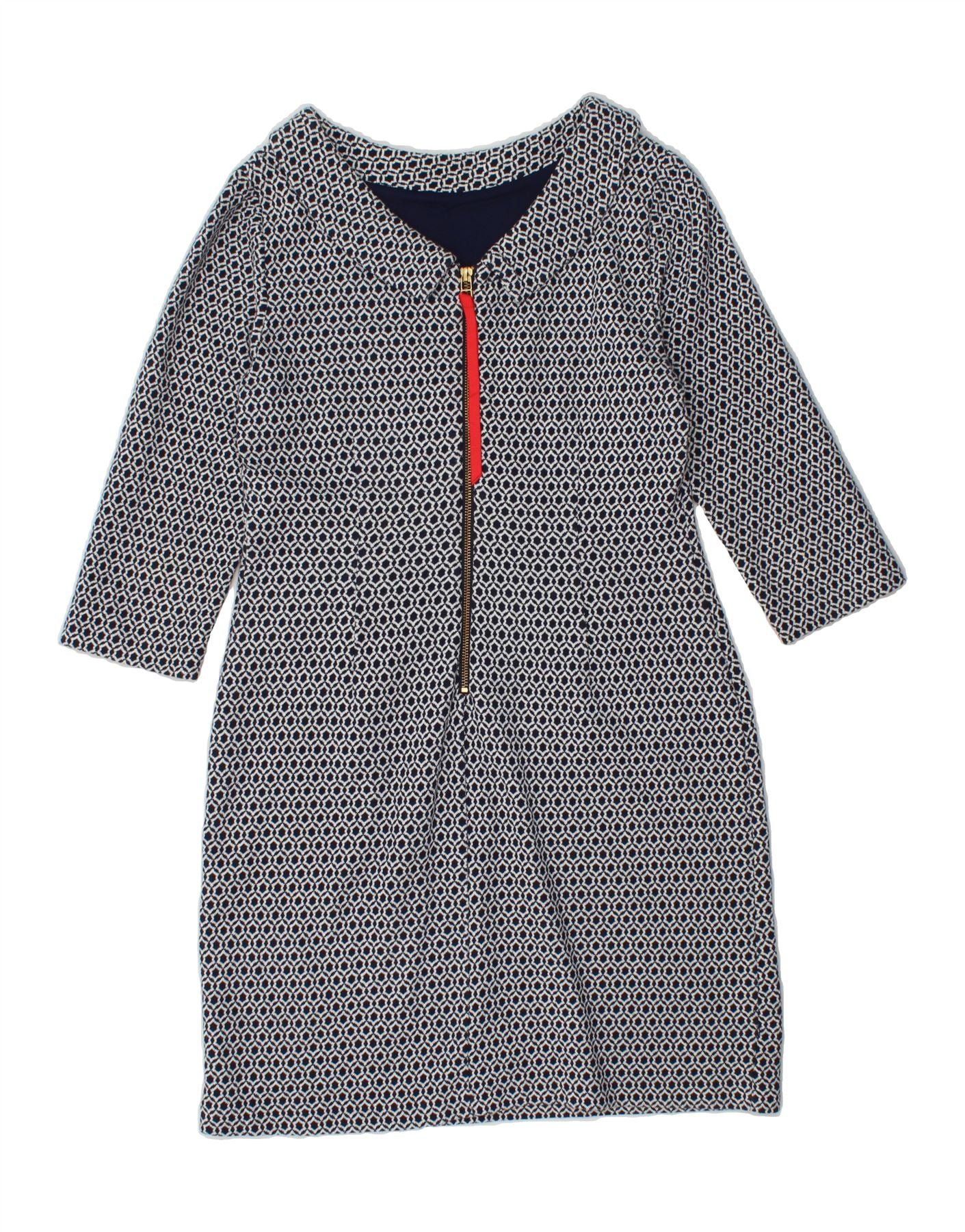 BODEN Womens 3/4 Sleeve Zip Neck Sheath Dress UK 12 Medium Blue Geometric