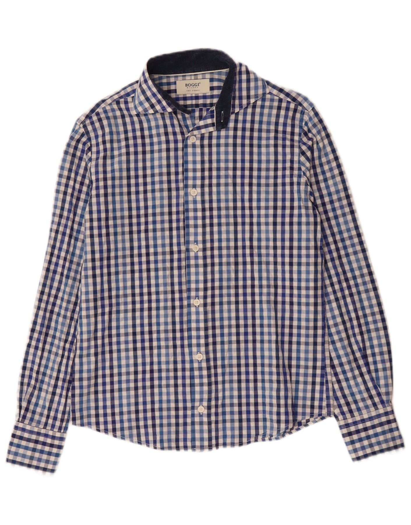 Мужская рубашка Boggi Milano, маленькая синяя хлопковая клетка в мелкую клетку