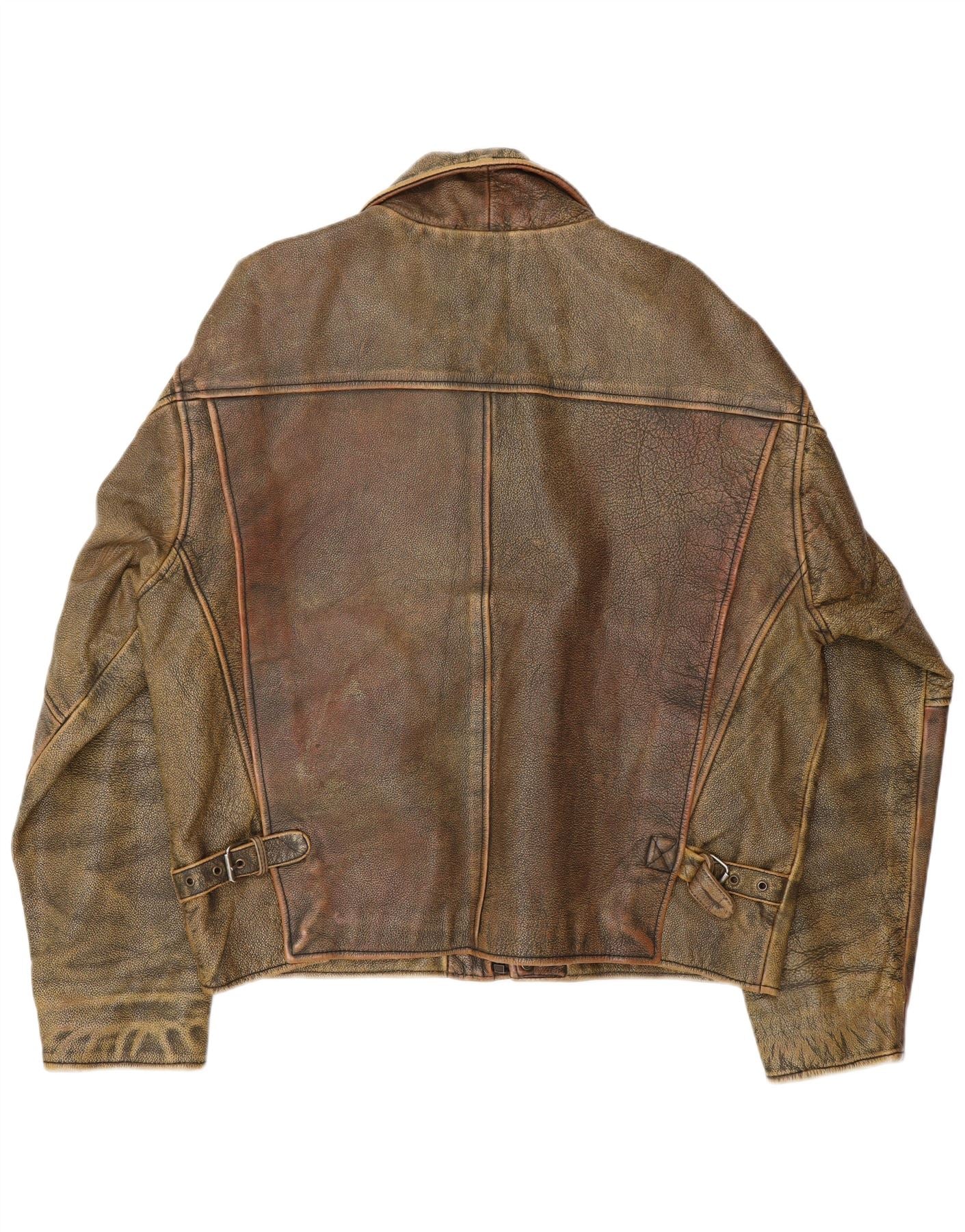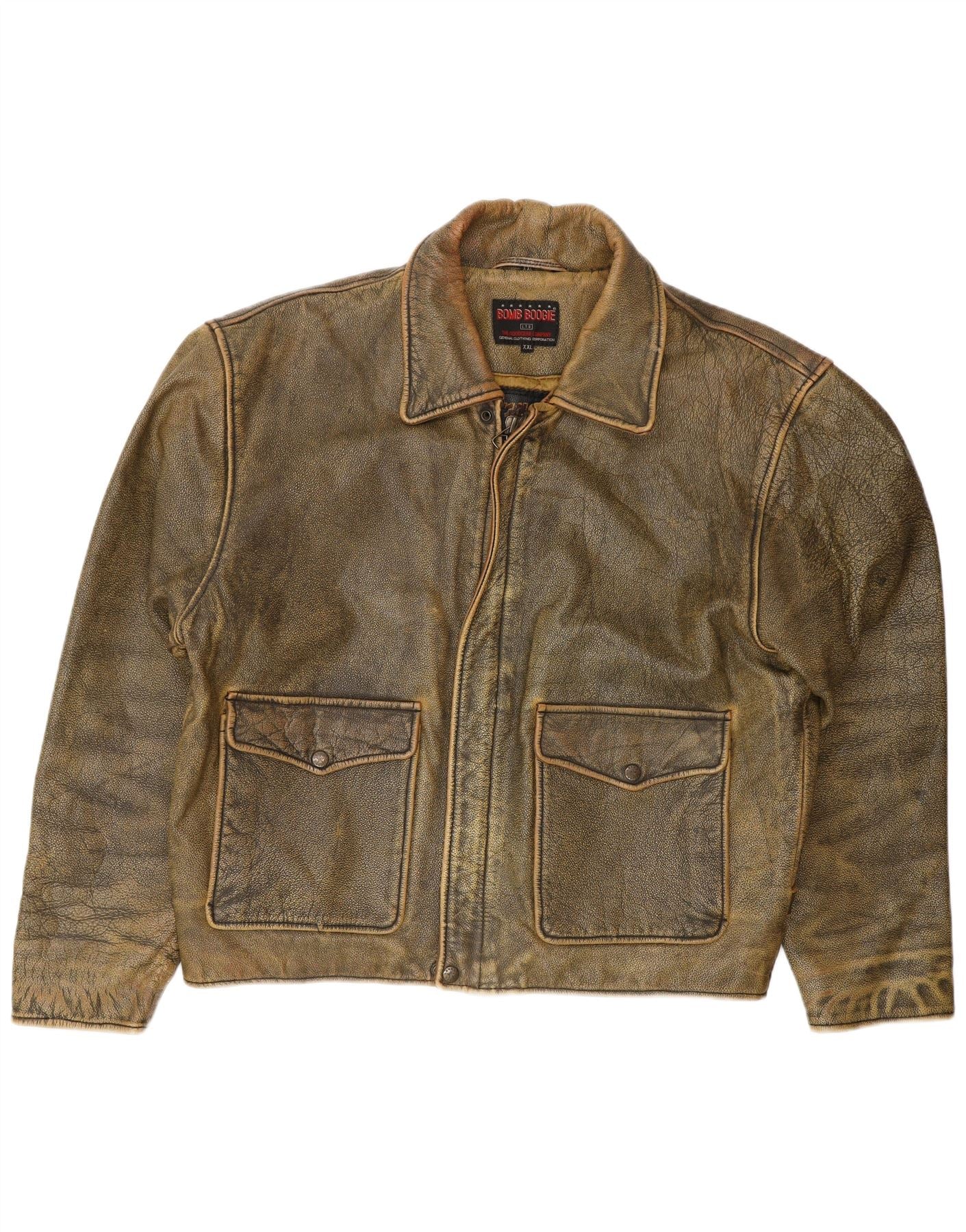 Home > Винтажные кожаные куртки > Винтажные коричневые кожаные куртки > Мужская кожаная куртка BOMB BOOGIE UK 44 2XL Коричневая кожаная байкерская куртка