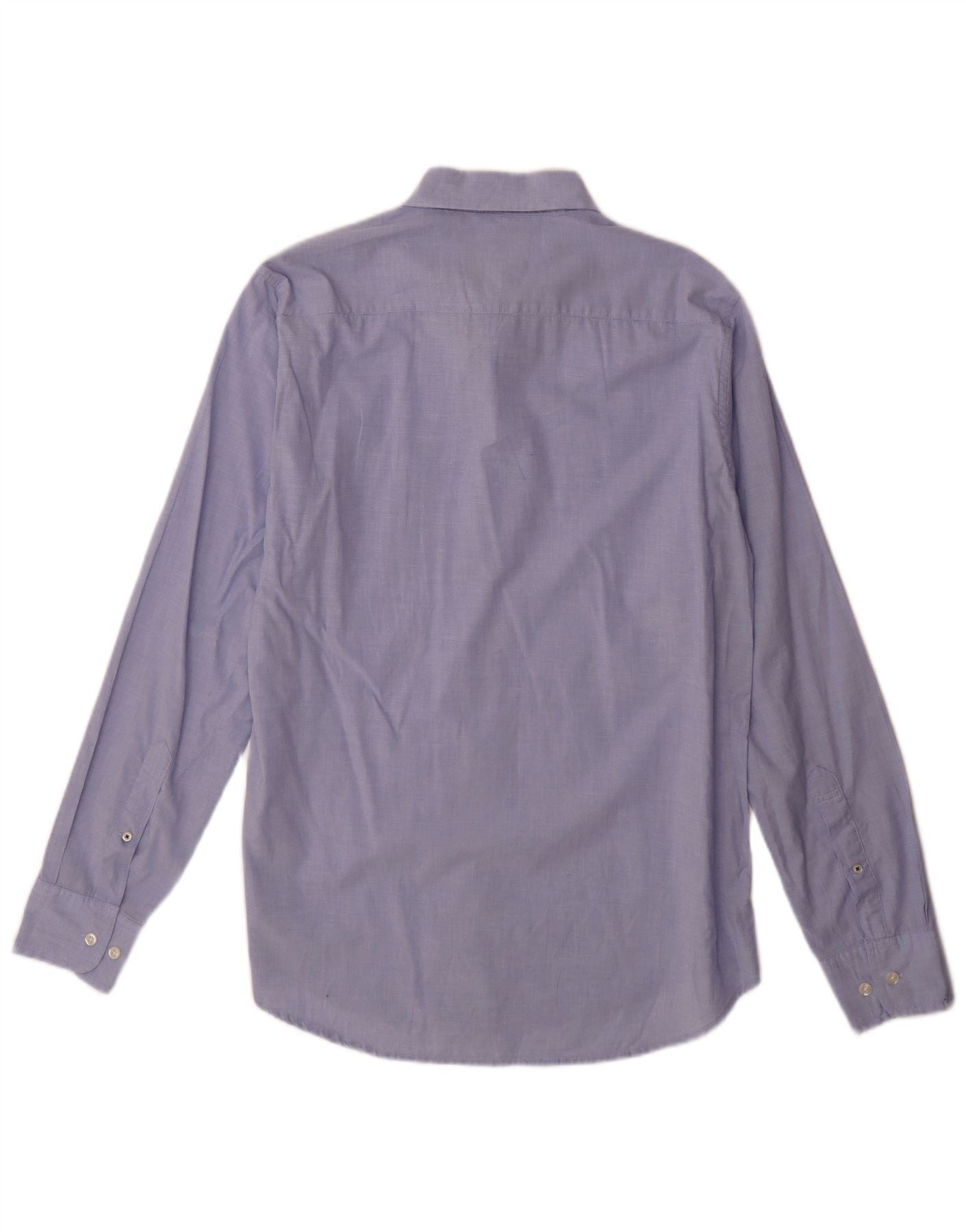 BONOBOS Мужская длинная приталенная рубашка из хлопка среднего синего цвета