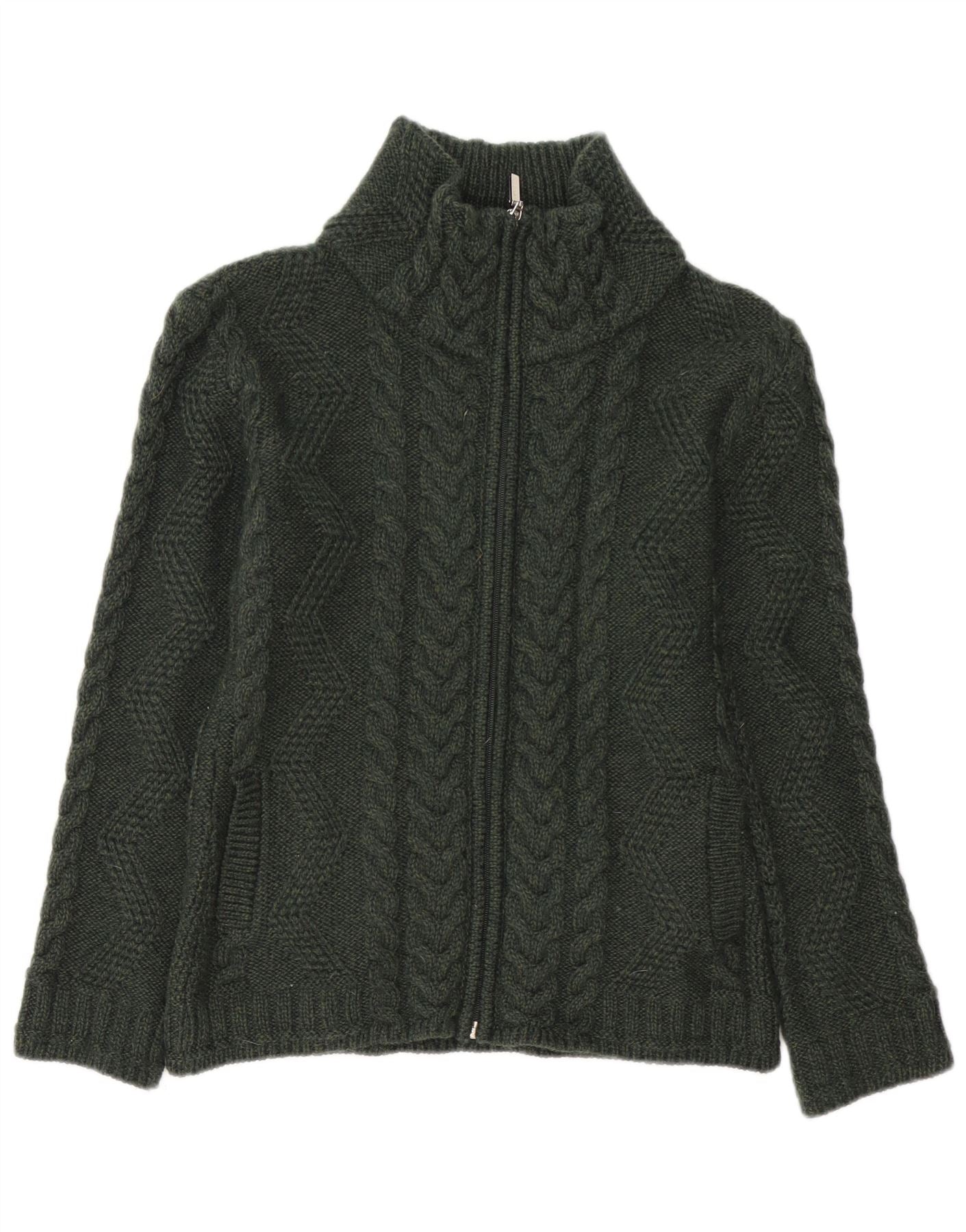 Женский свитер-кардиган BOSTON IRISH UK 10, маленький зеленый из шерсти мериноса