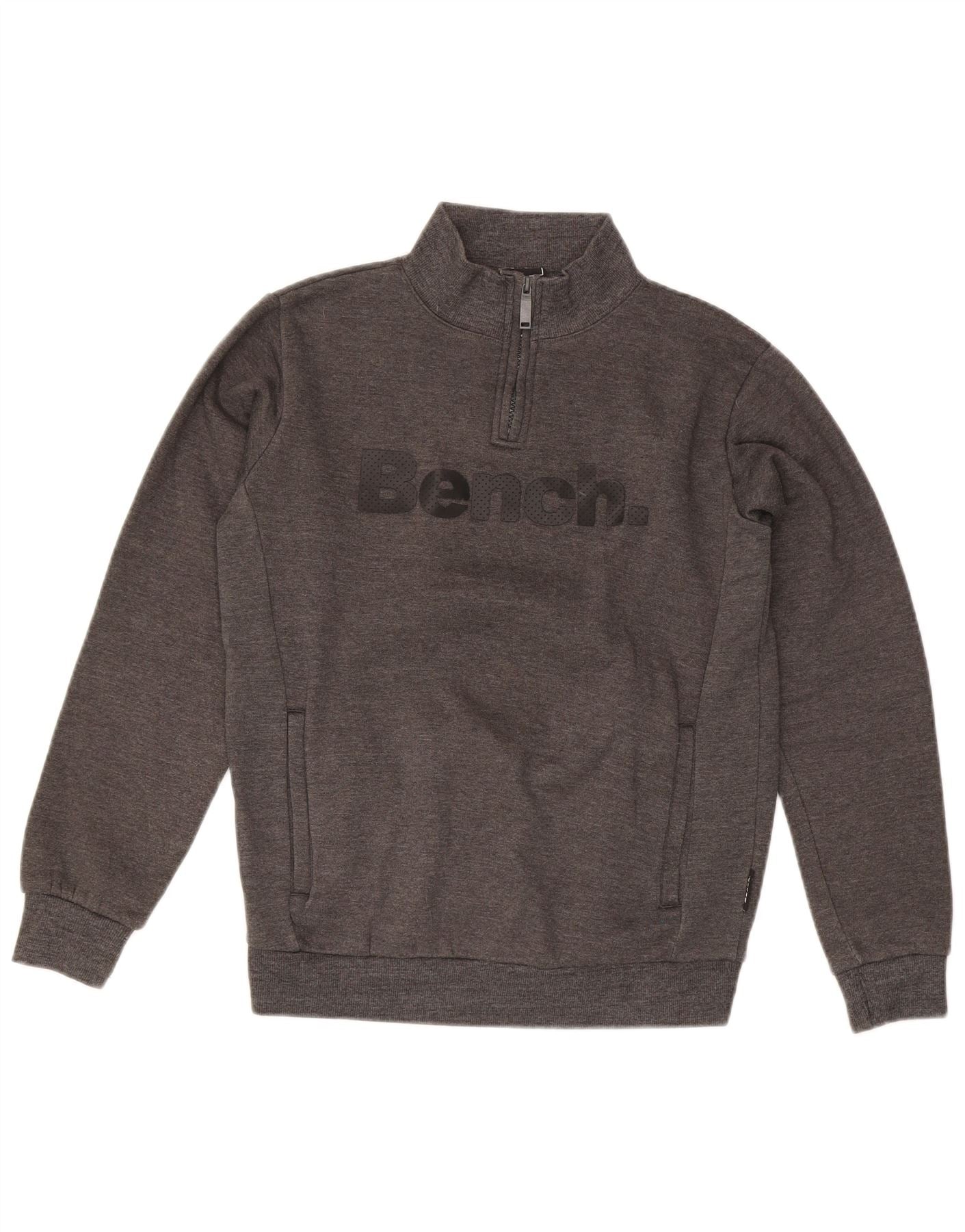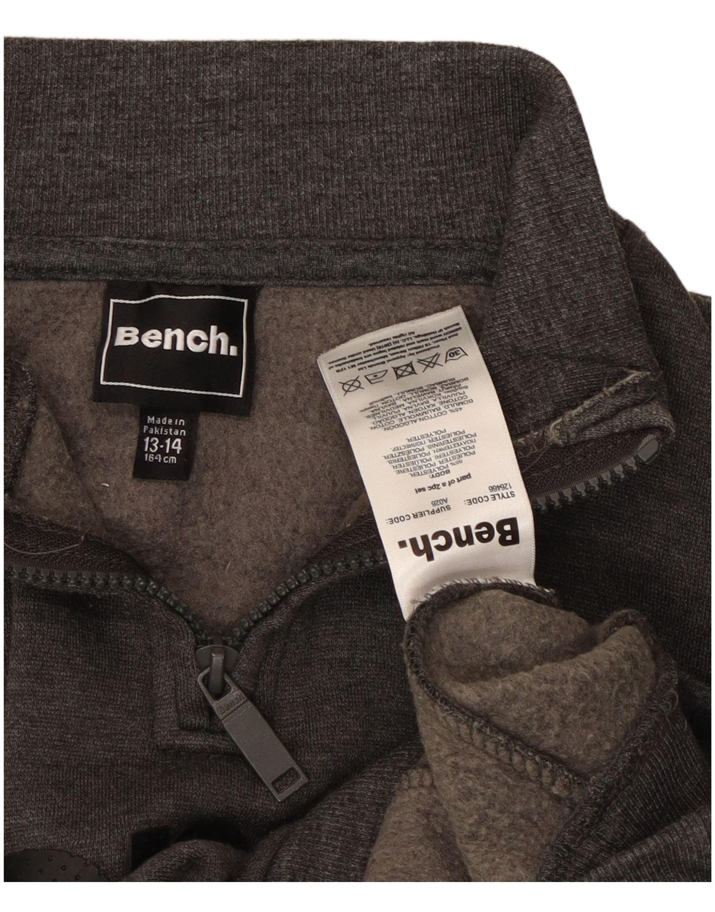 BENCH Boys Zip Neck Graphic Sweatshirt Jumper 13-14 Years Grey Polyester