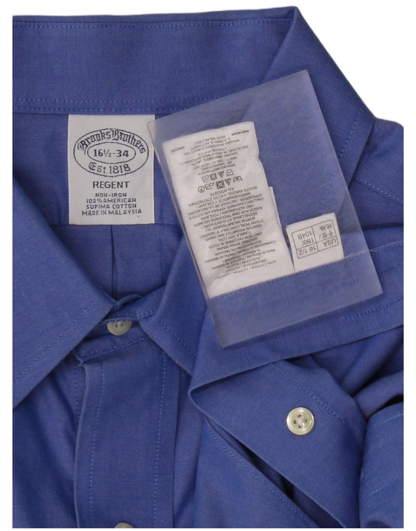 Мужская рубашка BROOKS BROTHERS Regent, размер 16, 1/2, большая, синяя, хлопок