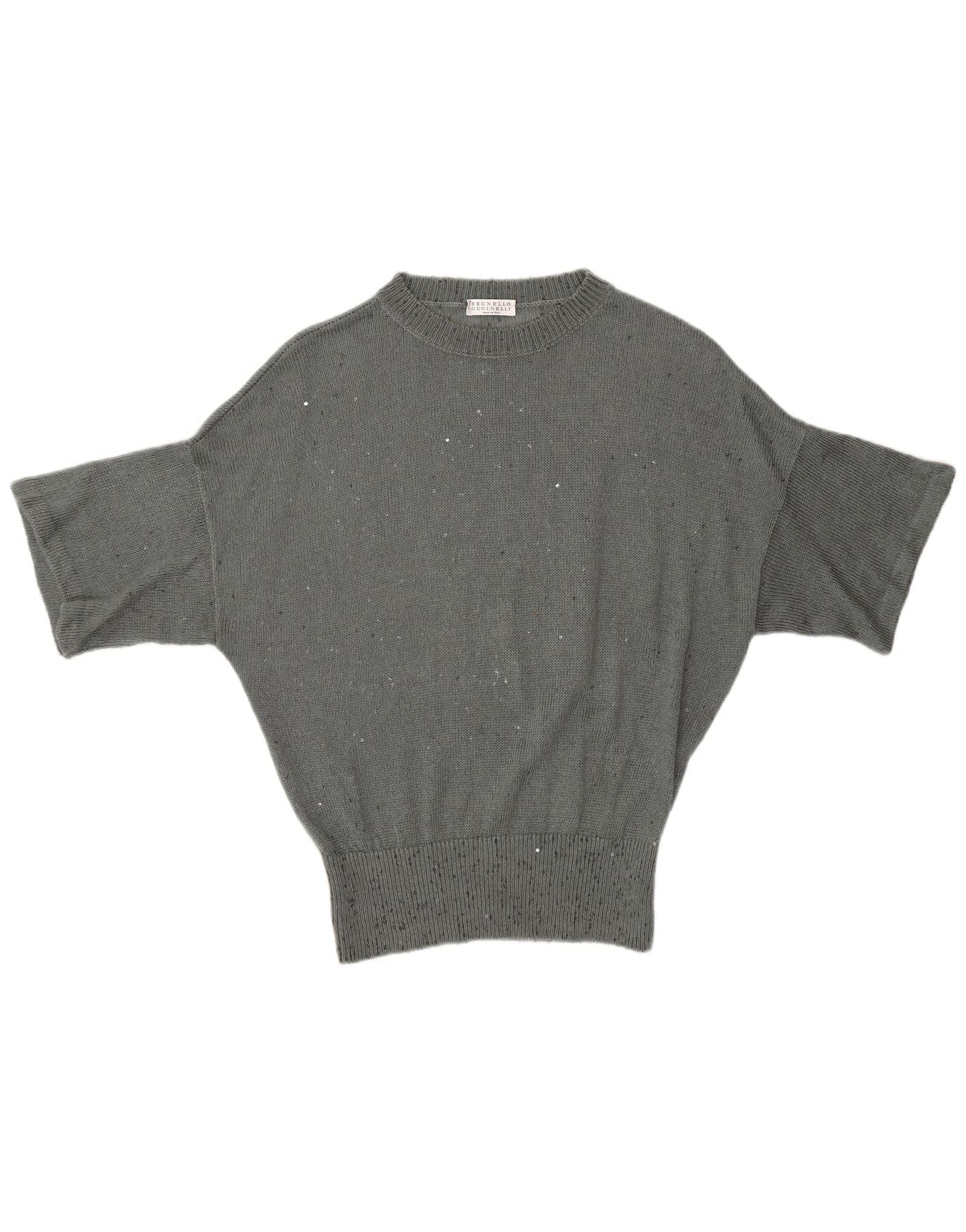 Home > Женский > Депоп Одежда > Женский джемпер с круглым вырезом BRUNELLO CUCINELLI UK 12, средний серый