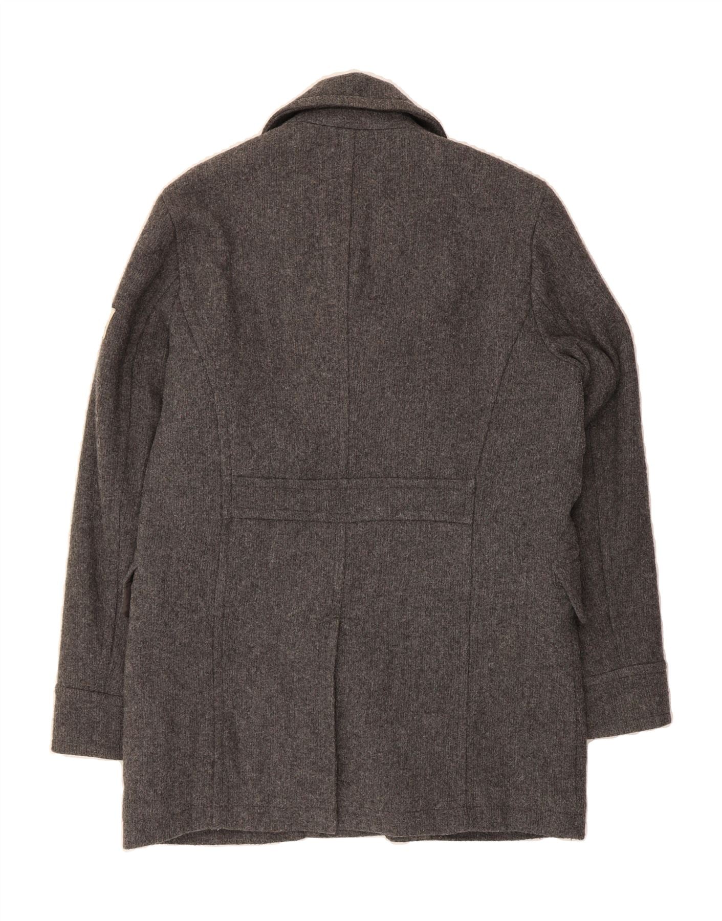 BRUNO BANANI Mens Graphic Pea Coat UK 38 Medium Grey Wool