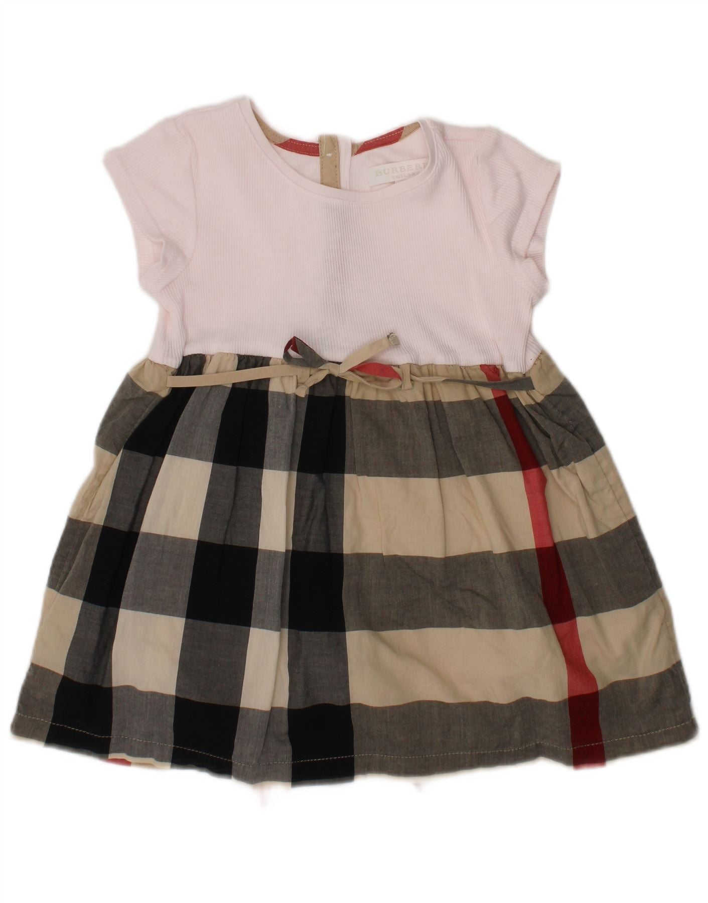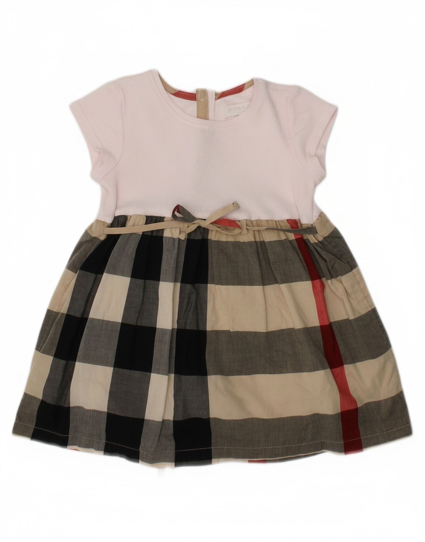 BURBERRY Baby Girls Basic Dress 9-12 Months Pink Check Cotton