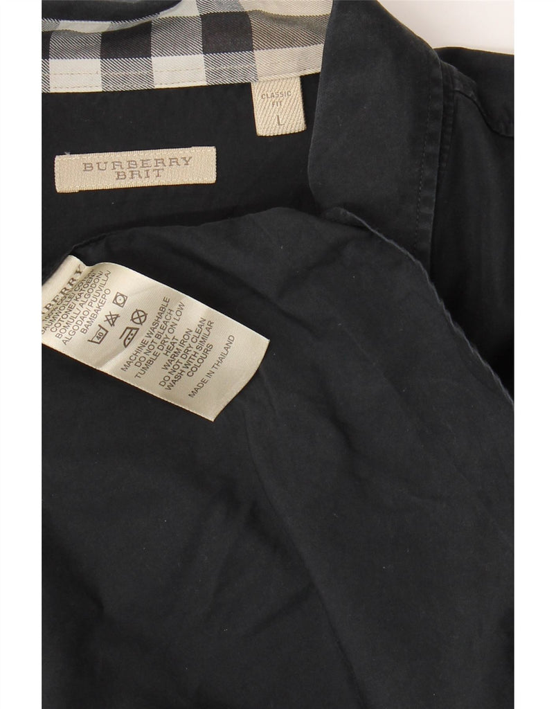 BURBERRY Mens BRIT Classic Fit Shirt Large Black Cotton