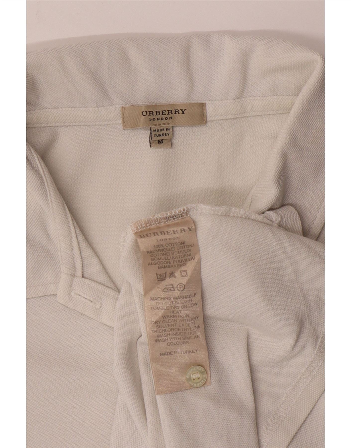 BURBERRY Womens Polo Shirt UK 12 Medium White Cotton
