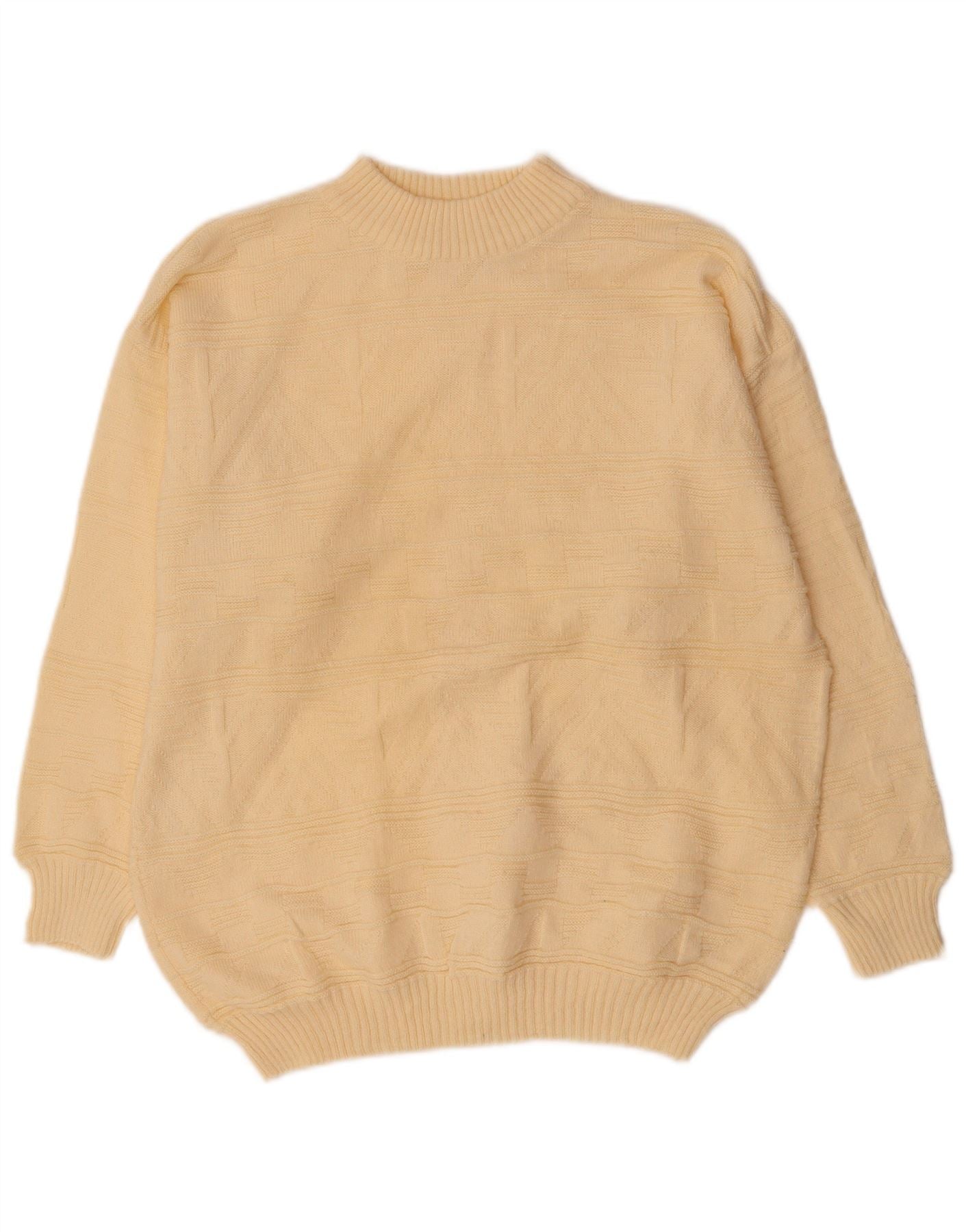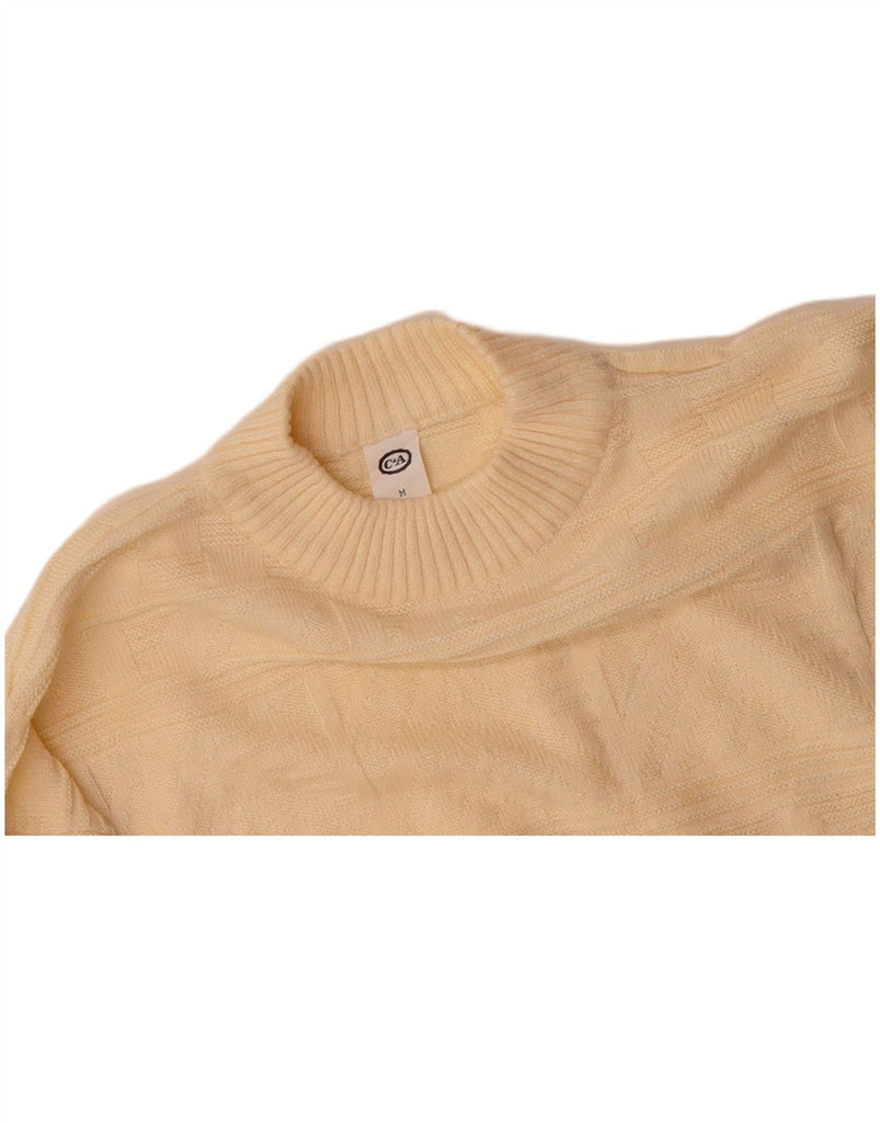 C&A Mens Turtle Neck Jumper Sweater Medium Off White Striped Acrylic