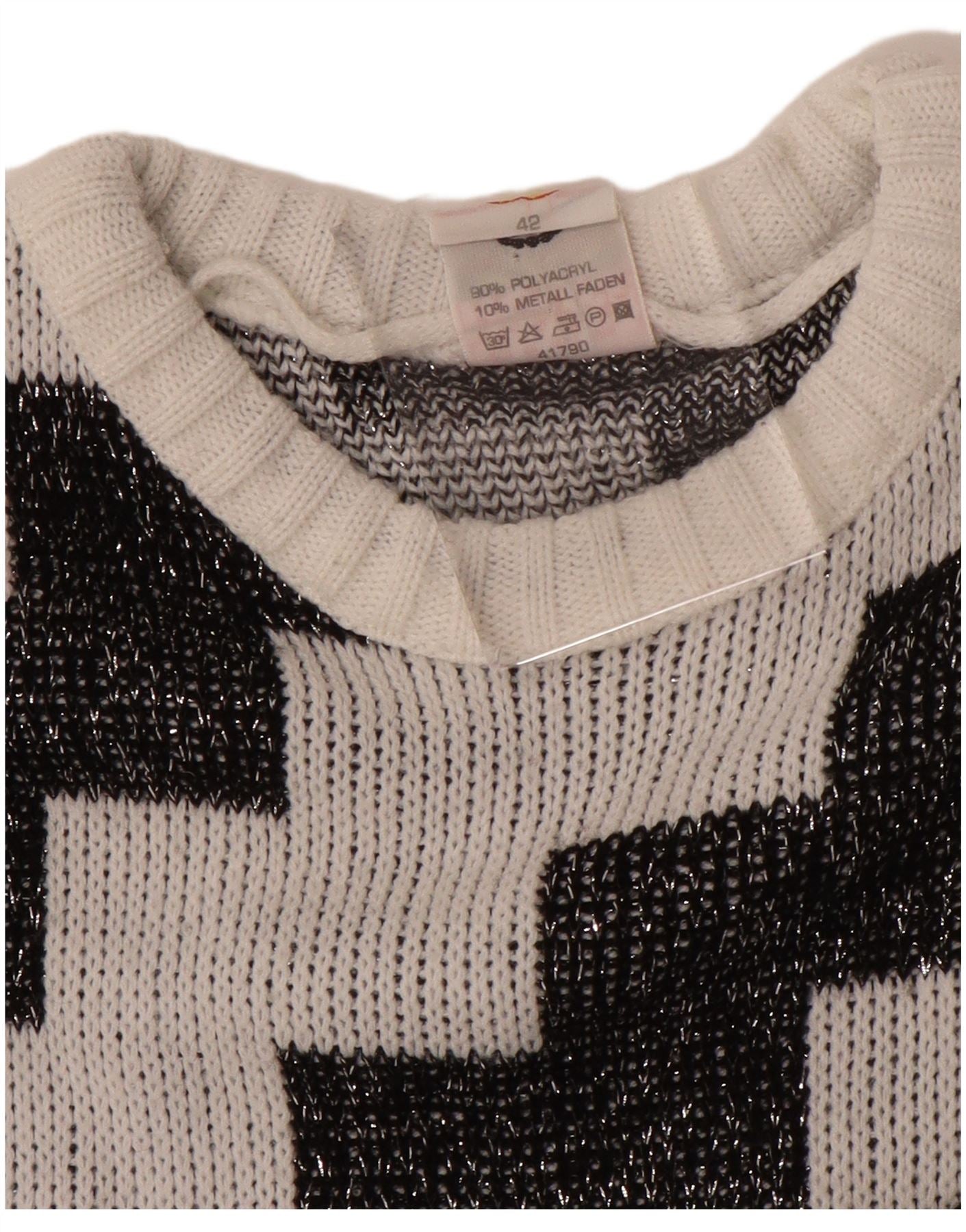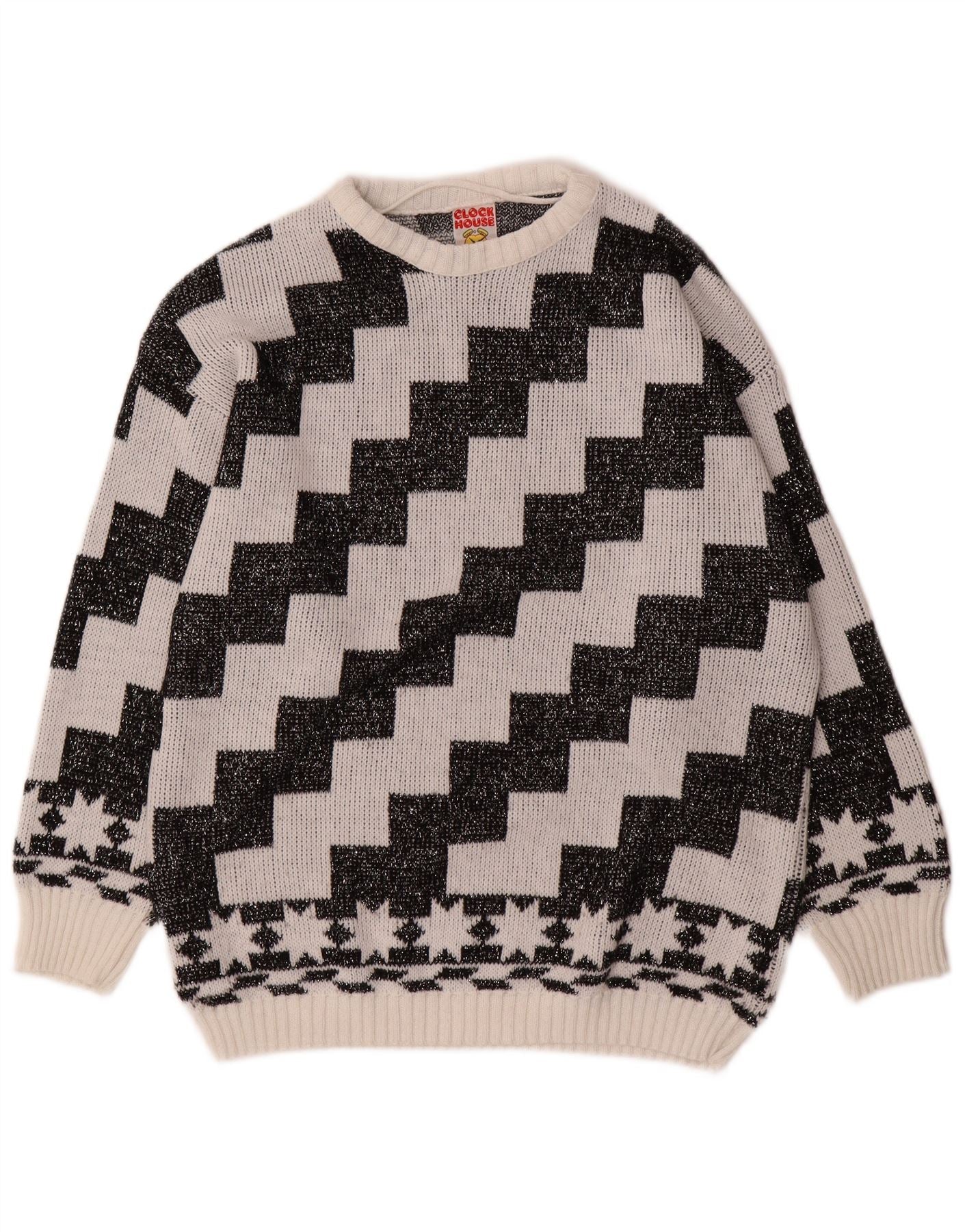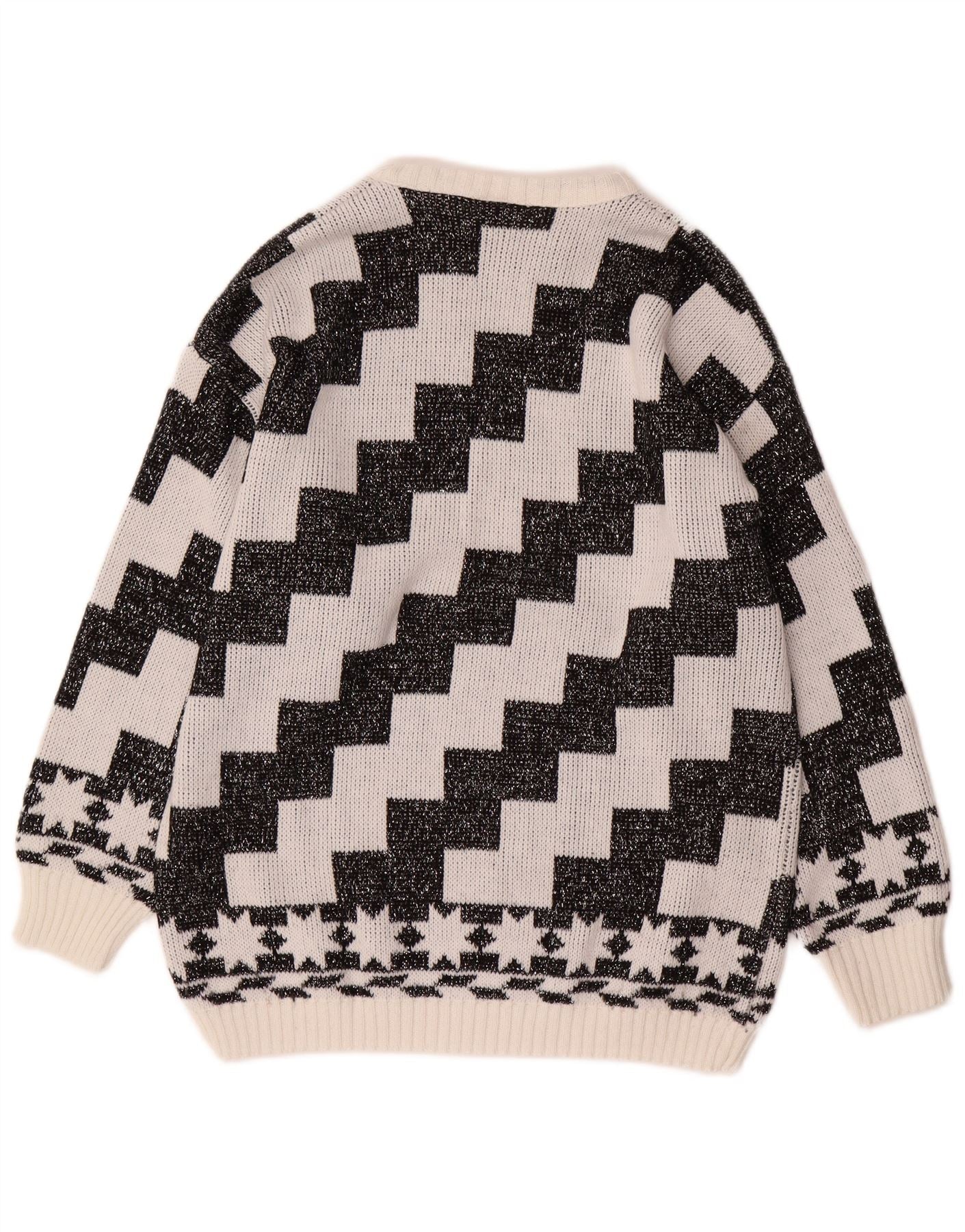 C&A Womens Oversized Boat Neck Jumper Sweater EU 42 Large White Geometric