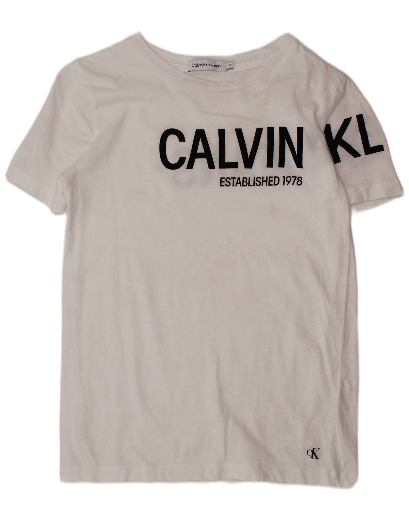 CALVIN KLEIN JEANS Футболка с рисунком для мальчиков, топ 9-10 лет, белый
