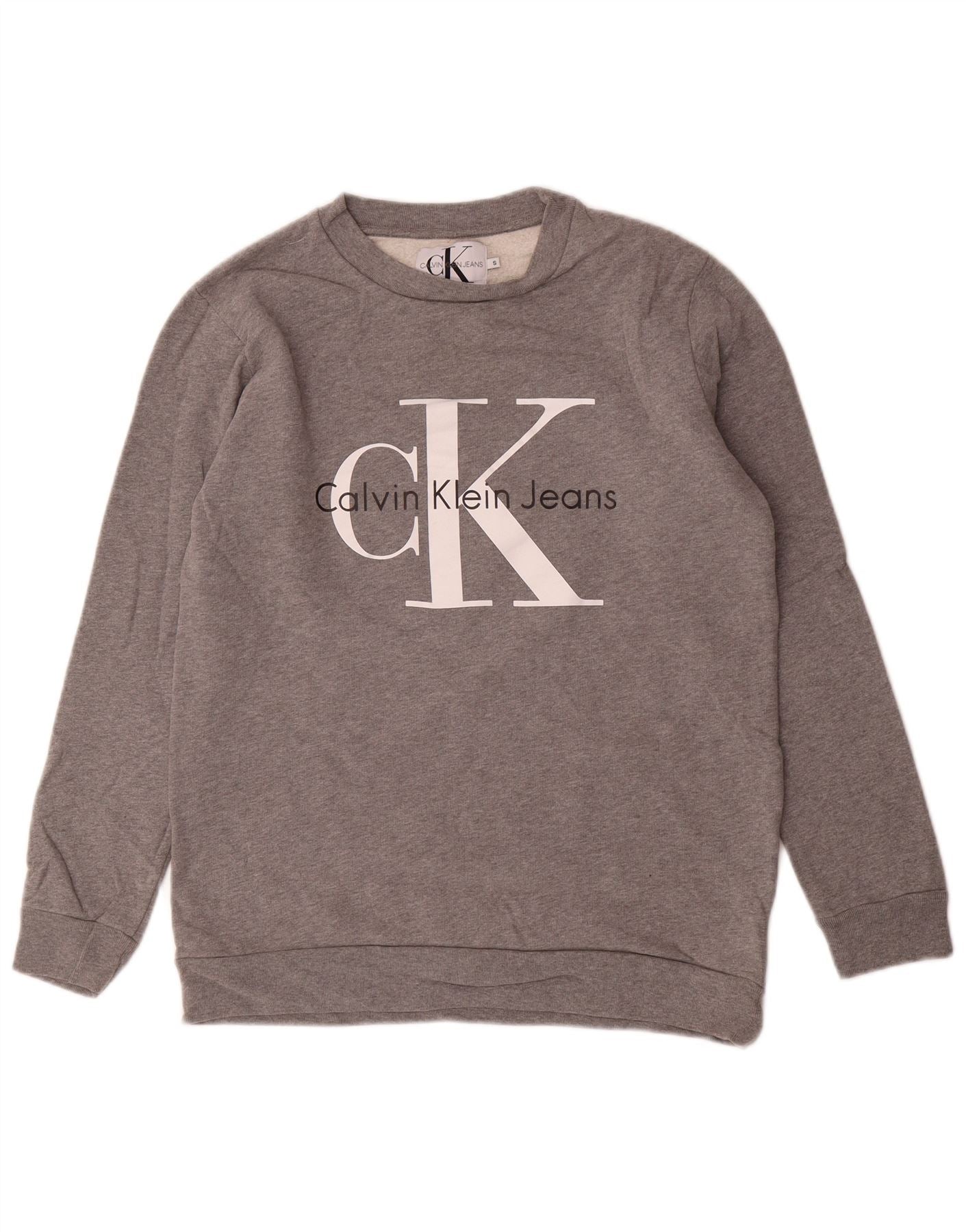 CALVIN KLEIN JEANS Мужской свитшот с рисунком, маленький серый хлопковый джемпер