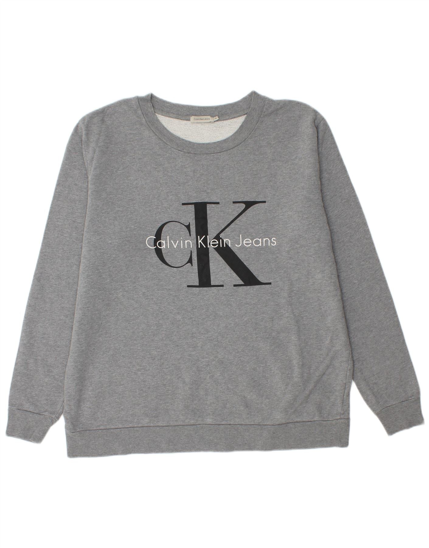 CALVIN KLEIN JEANS Мужской свитшот с рисунком, джемпер XL, серый хлопок