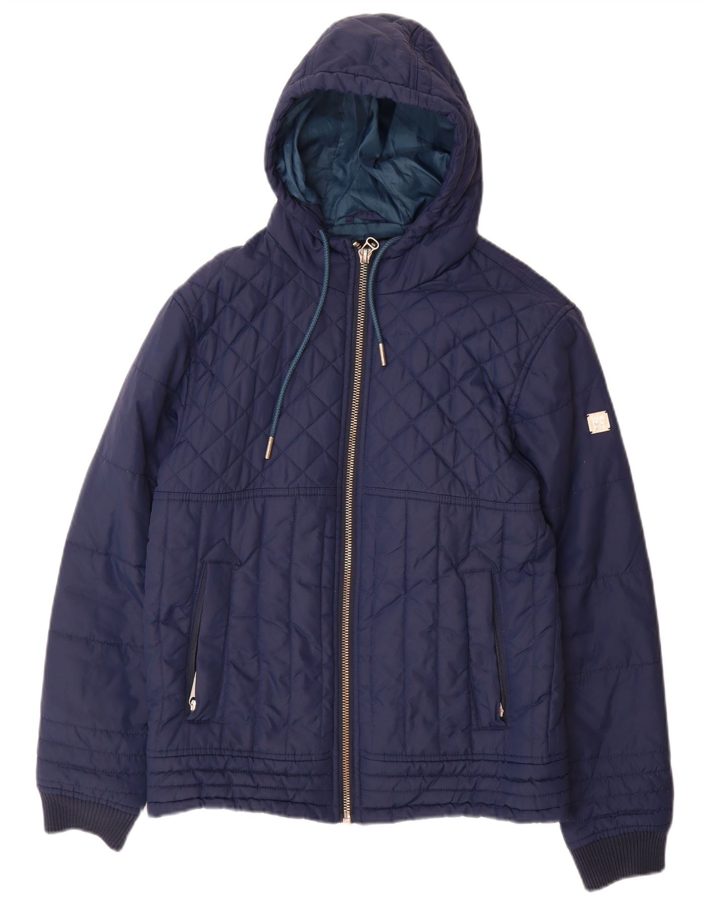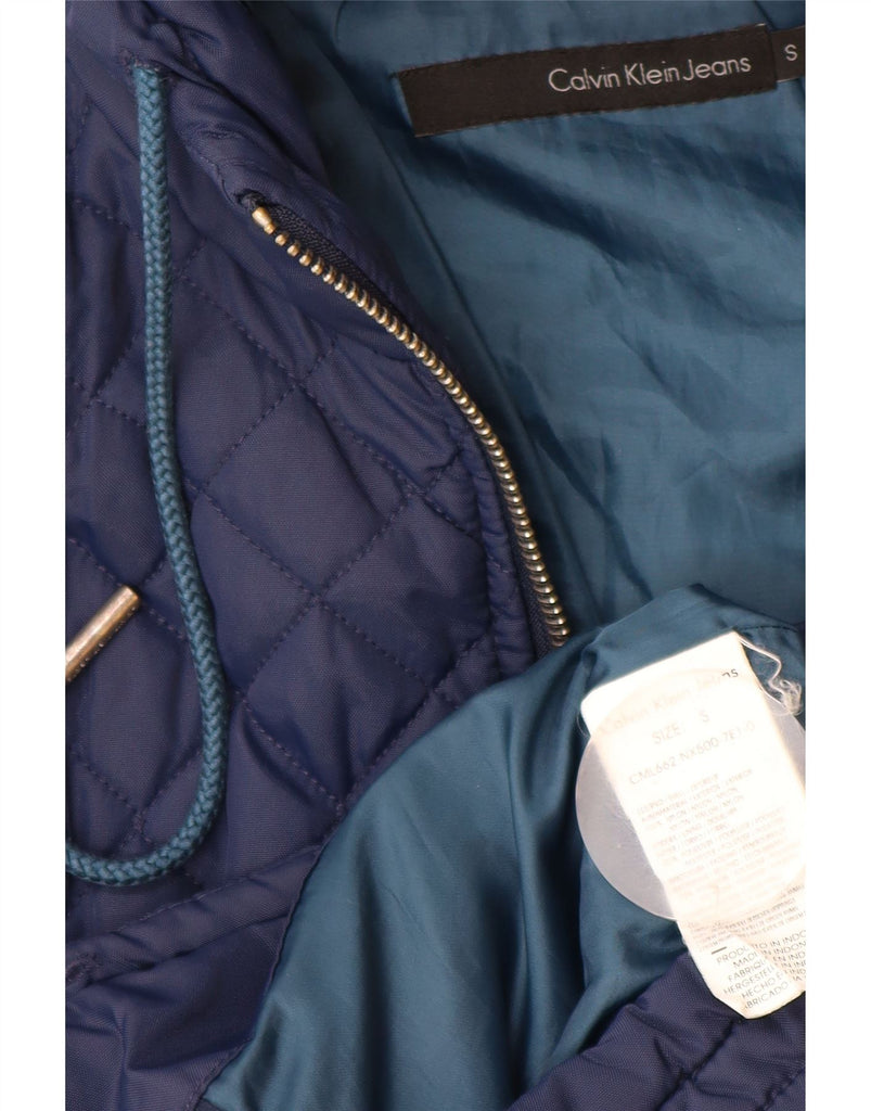 CALVIN KLEIN JEANS Мужская стеганая куртка с капюшоном UK 36, маленькая, темно-синий, нейлон