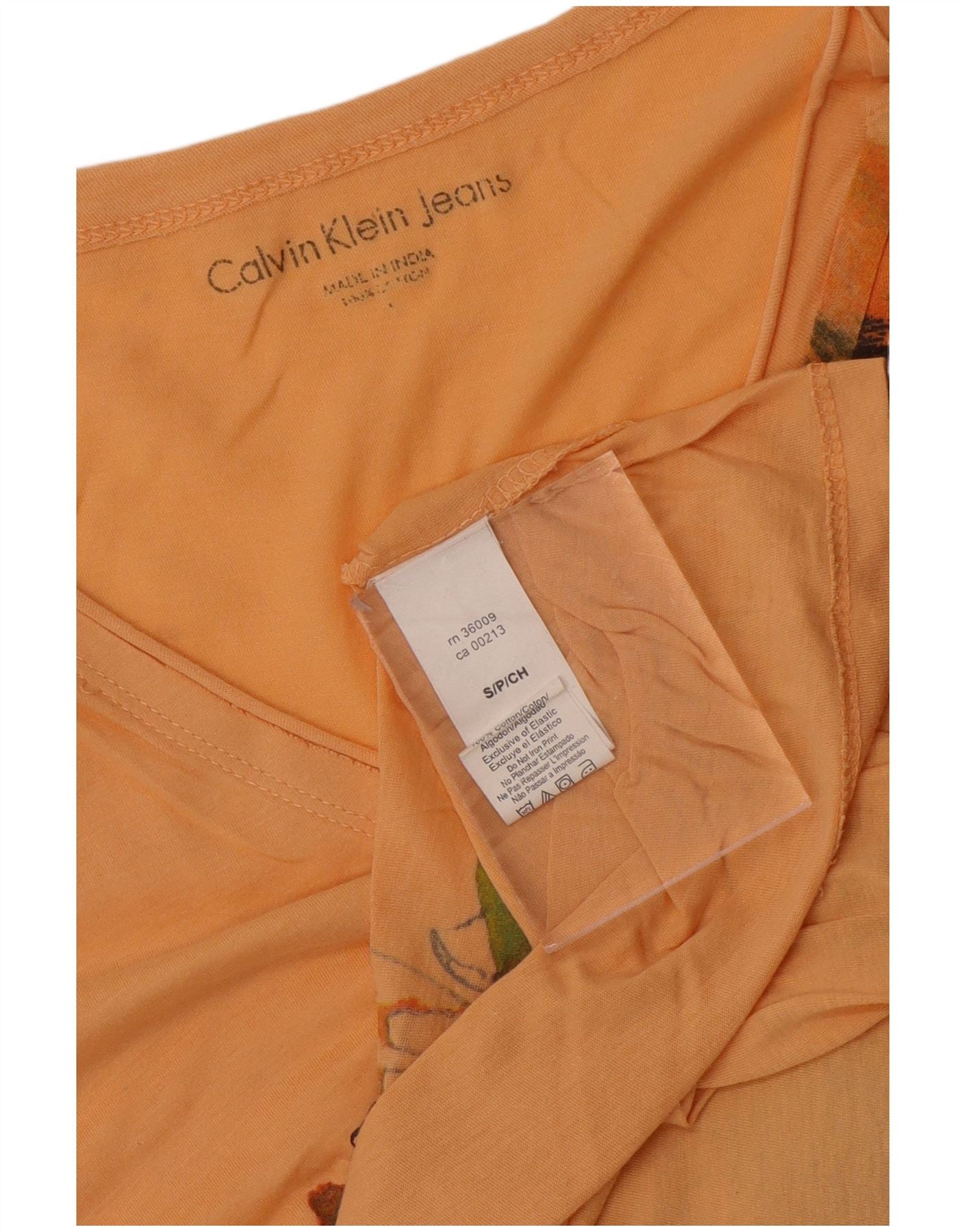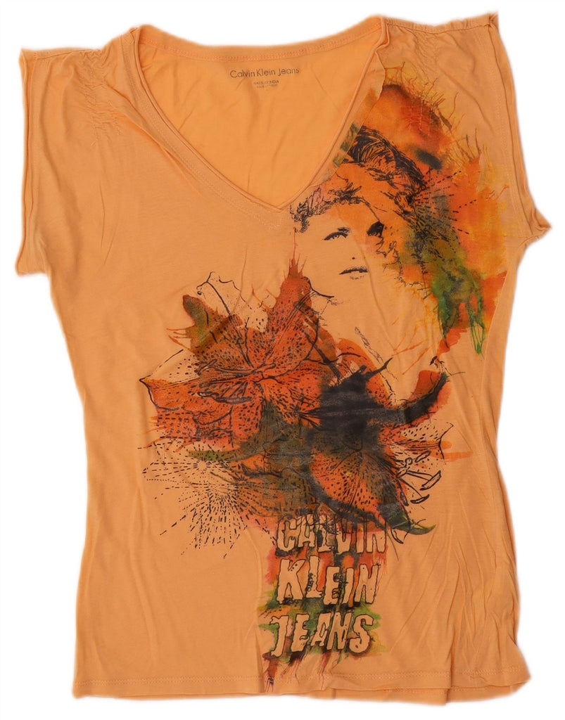 CALVIN KLEIN JEANS Женская футболка с рисунком Top UK 10, маленький оранжевый хлопок