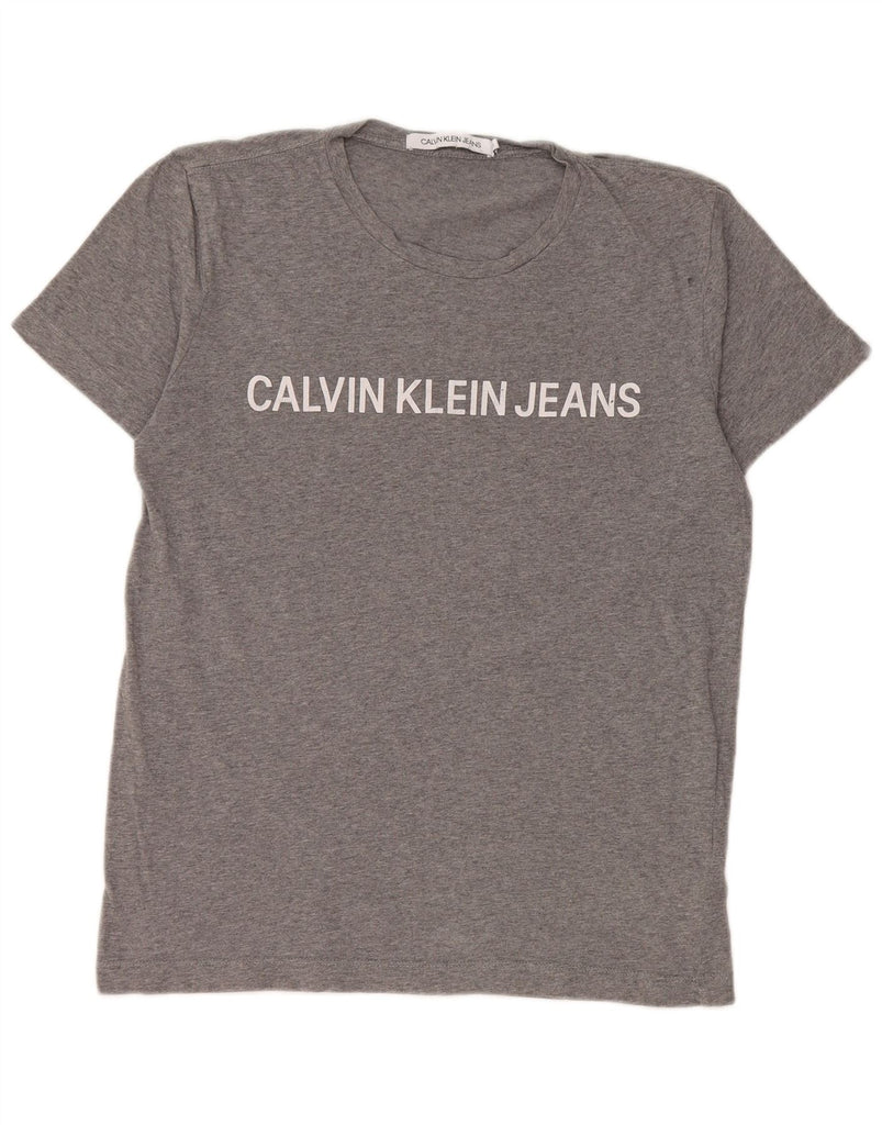 CALVIN KLEIN JEANS Женская футболка с рисунком Top UK 14 Средний серый хлопок